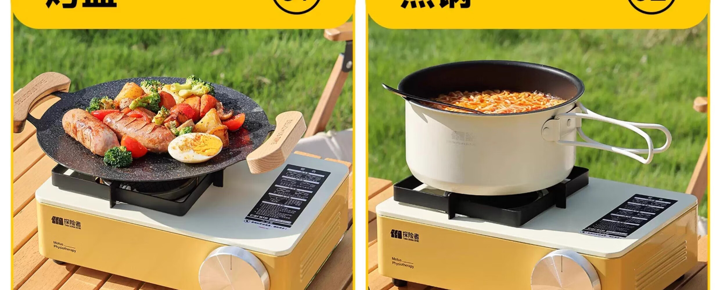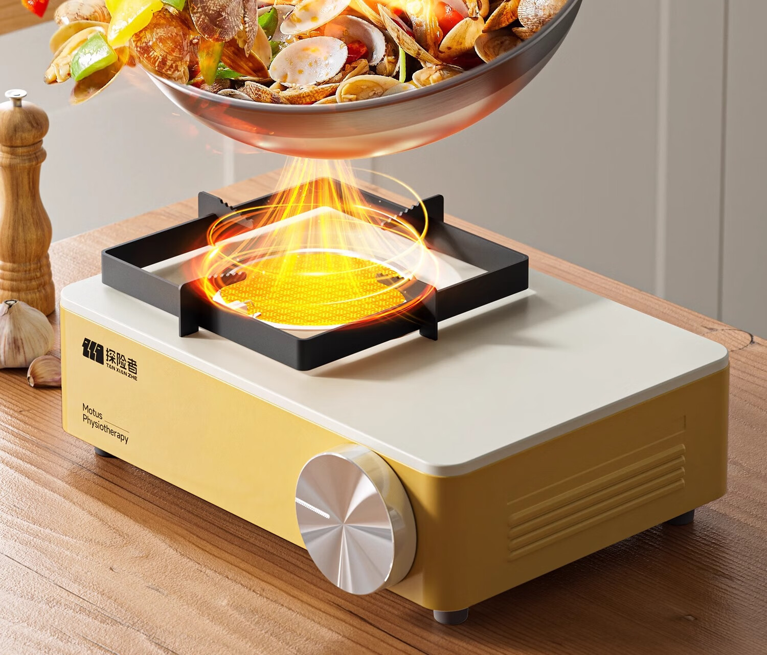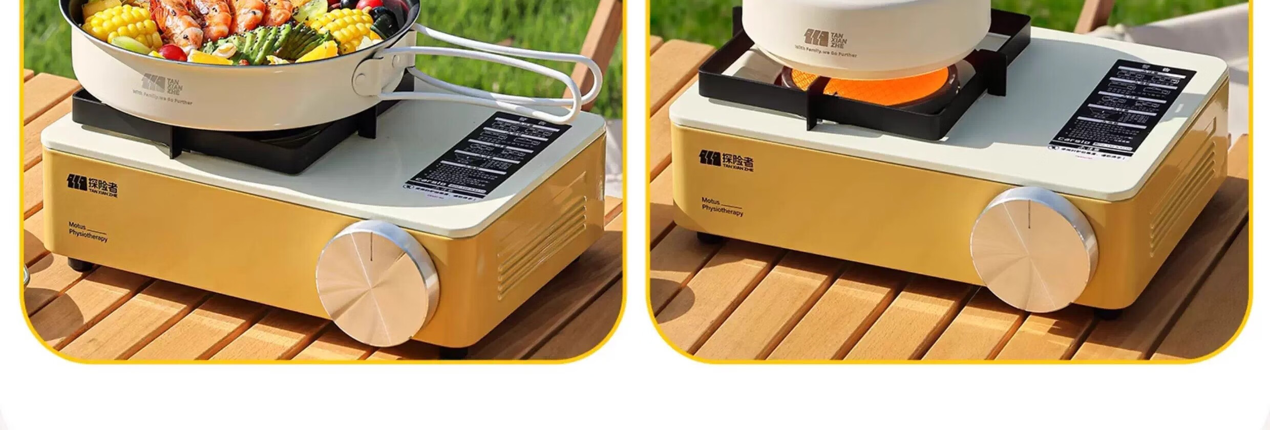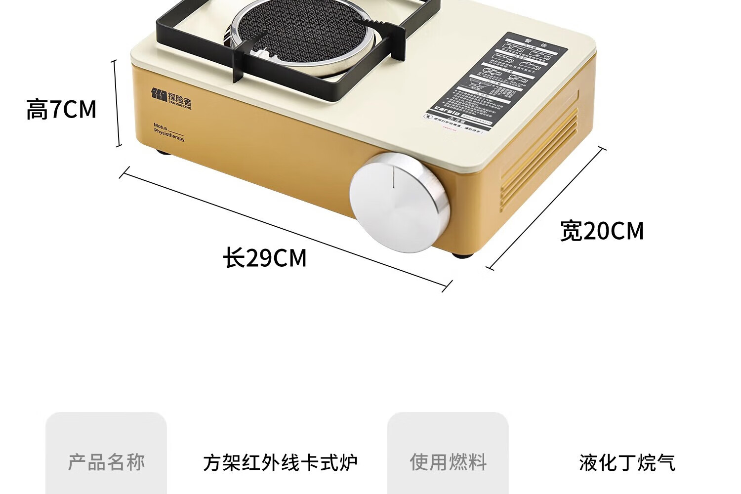 探险者防爆卡式炉户外卡磁炉便携式野外露营炉具套装红外线防风卡斯炉 【靓丽黄】卡式炉+2气+烤盘+箱