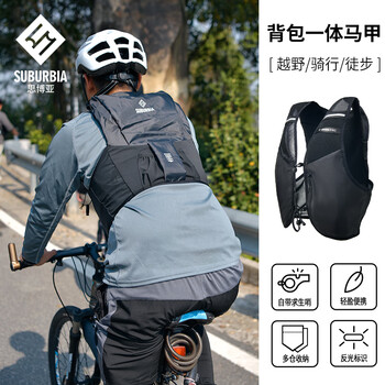 SUBURBIA思博亚专业户外越野背心骑行背包多功能马拉松跑步背心求生口哨 黑色