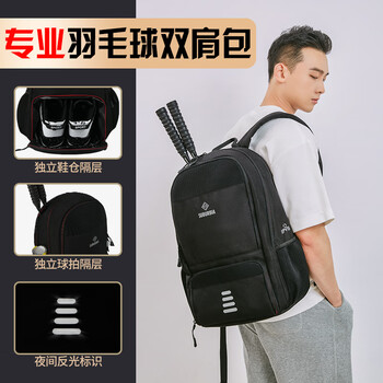 思博亚羽毛球包双肩背包男士网球拍包男女独立鞋仓旅行背包团队定制 黑色 32*25*49(大号)