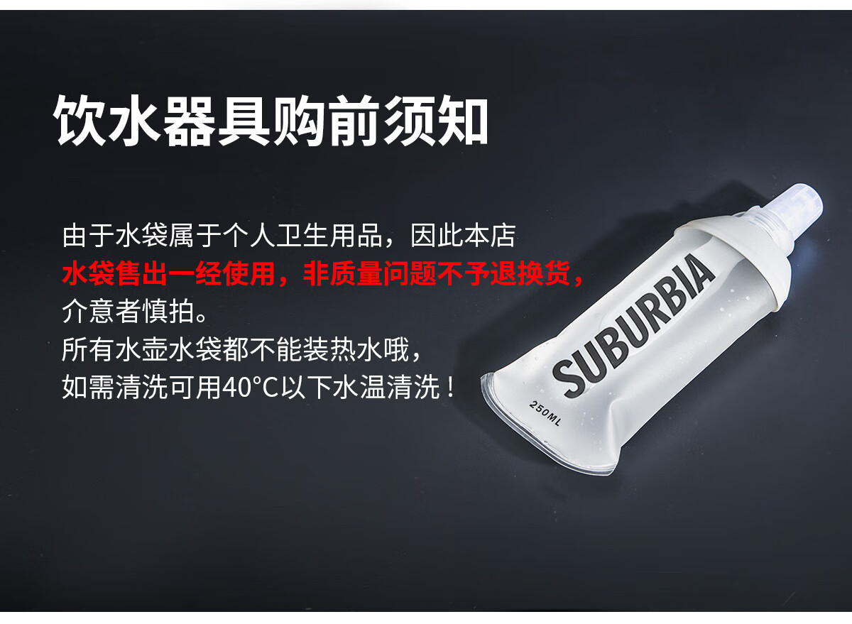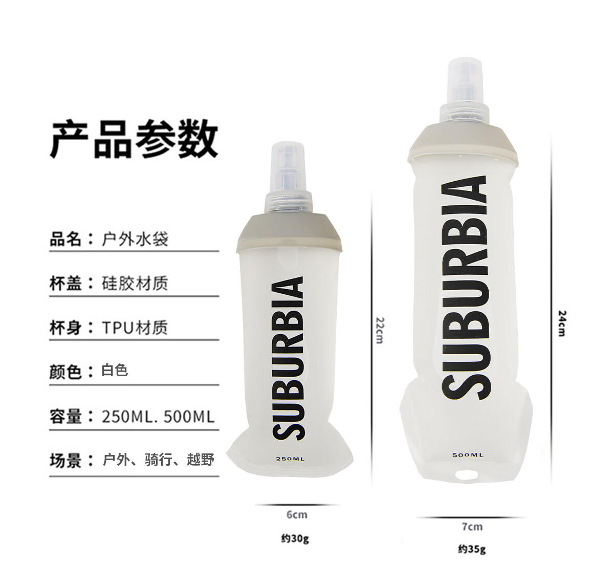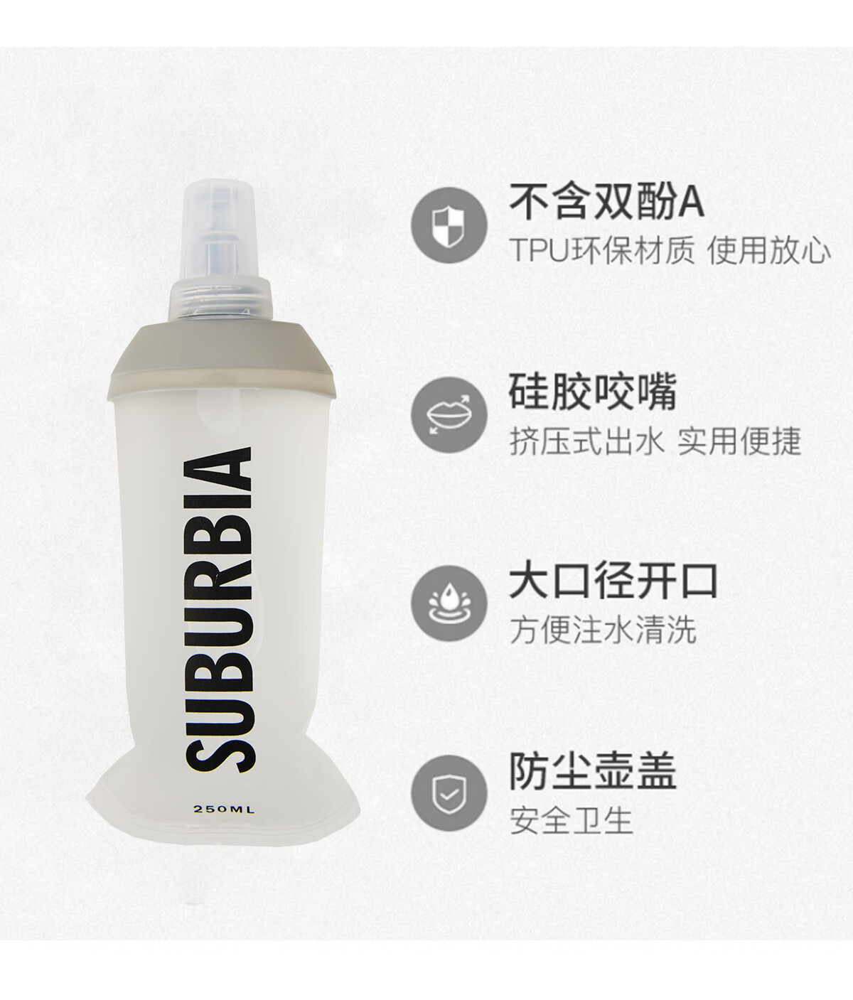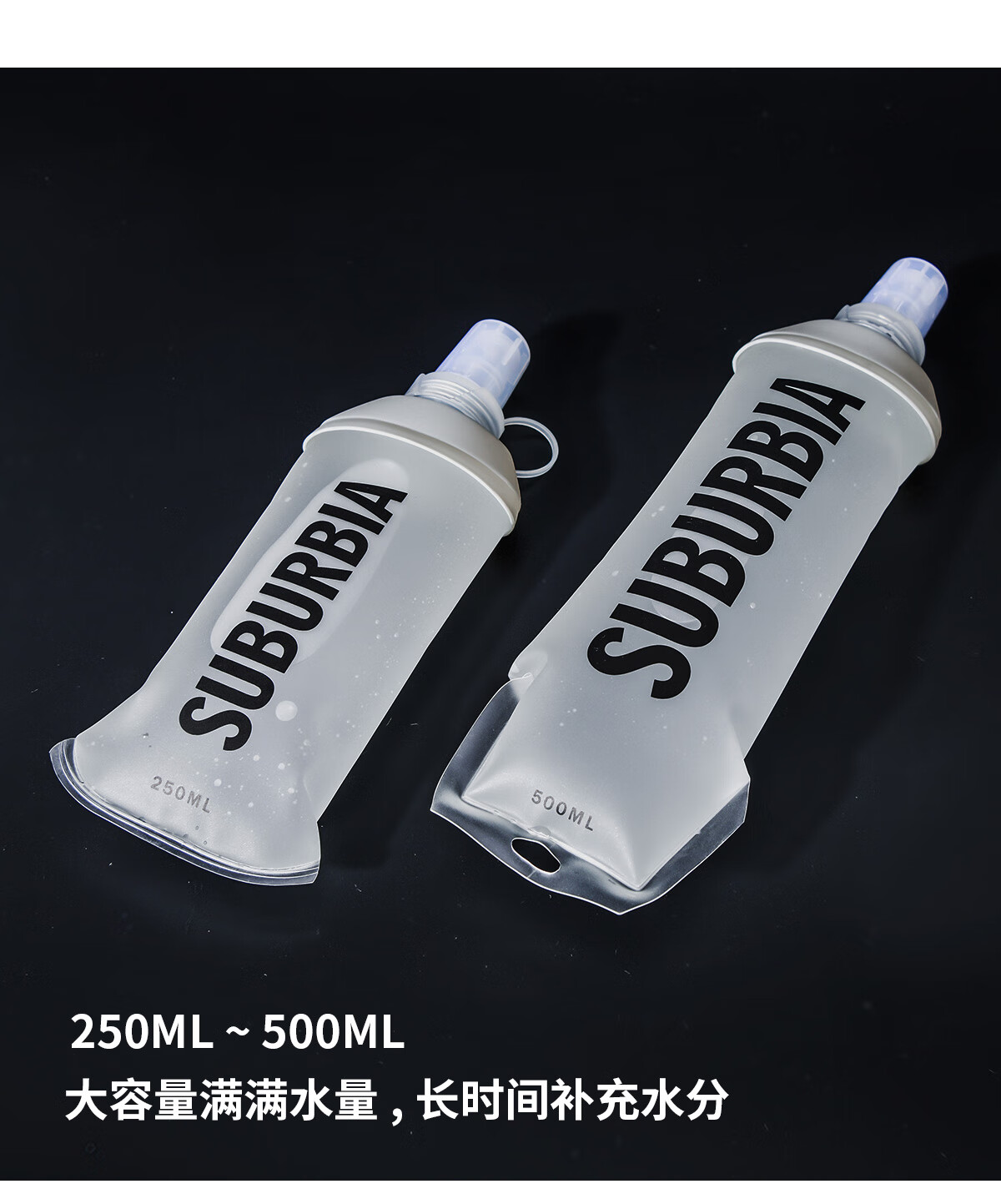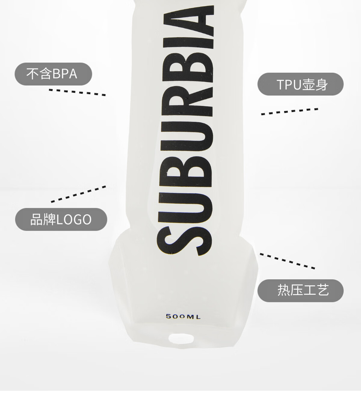 SUBURBIA户外装备硅胶折叠软水袋越野徒步骑行跑步手持运动水壶演唱会 500ml