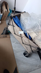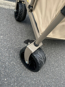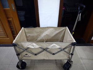 推车收到了,质量看着不错,车轮很宽很厚,帆布质量也很好,承重也可以,出门旅游烧烤,装东西既方便又快捷,真的不错哦!!!!!