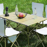 顺优户外折叠桌子碳钢合金蛋卷桌椅露营野餐桌便携式全套装备用品桌椅 卡其色120CM长桌【适合6-8人】