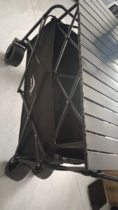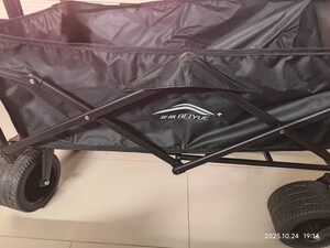 这款露营车超出心理预期了。首先车架车身特别结实,满满的安全感。把手可以自动回弹,避免弯腰。车轮子很宽,可以轻松应对各种地形。我买来当小摊车用,如果后架固定,可以铺上桌子之后,再后开就更完美了。