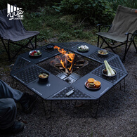 Campingmoon柯曼户外简易折叠网桌套装野餐桌子多层铁艺置物架车载桌 焚火围炉桌麻叶纹天板套餐