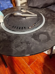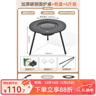 糜鸿(MIEHONE)圆形围炉煮茶桌子户外庭院露营折叠烧烤桌家用无烟木炭取暖茶桌几 黑色桌面+烤盘7件套