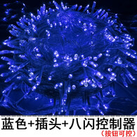 过年LED小彩灯闪灯串灯满天星灯春节日户外霓虹灯新年家用氛围灯 蓝色 24V低压款:50米8闪+插头+变压器