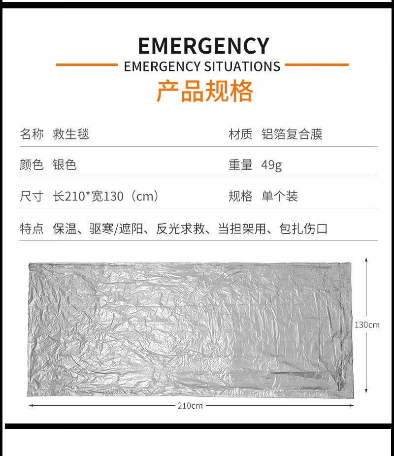 这一款真的很实用,上次露营突然降温,拿出来裹上立马暖和了。材质轻便不占地方,折叠起来塞包里就行。安全系数高,用着放心,户外活动必备。性价比不错。