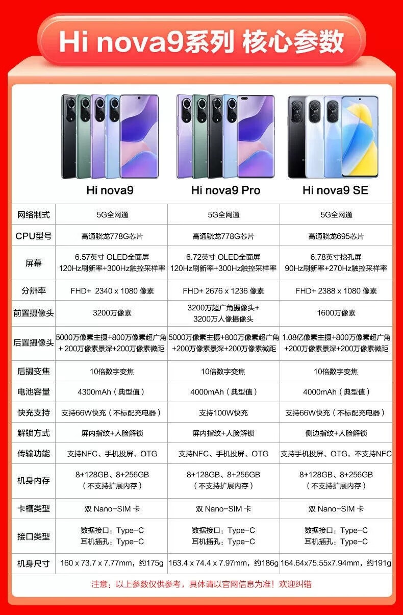 华为Huawei/华为nova 9正品手机hi nova9pro全网通5G双卡鸿蒙曲屏NFC 普罗旺斯 HInova9SE【5G版本】直面 8+256GB