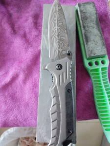 外形很别致。拿着也比较顺手,做工也很精致。精工品质。刀子很大,很锋利,手感特别棒,户外极品装备。花纹非常好看。可以用来切西瓜。日常使用足够。
