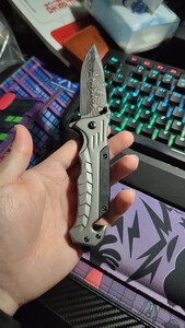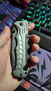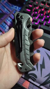 收到,我都惊呆了,太好看了,手感沉甸甸的,手动打开后自动锁片,不至于伤了自己。闭合的时候轻轻拨动锁片即可。尾部带有破玻璃神器,关键时刻会用的上。很满意。