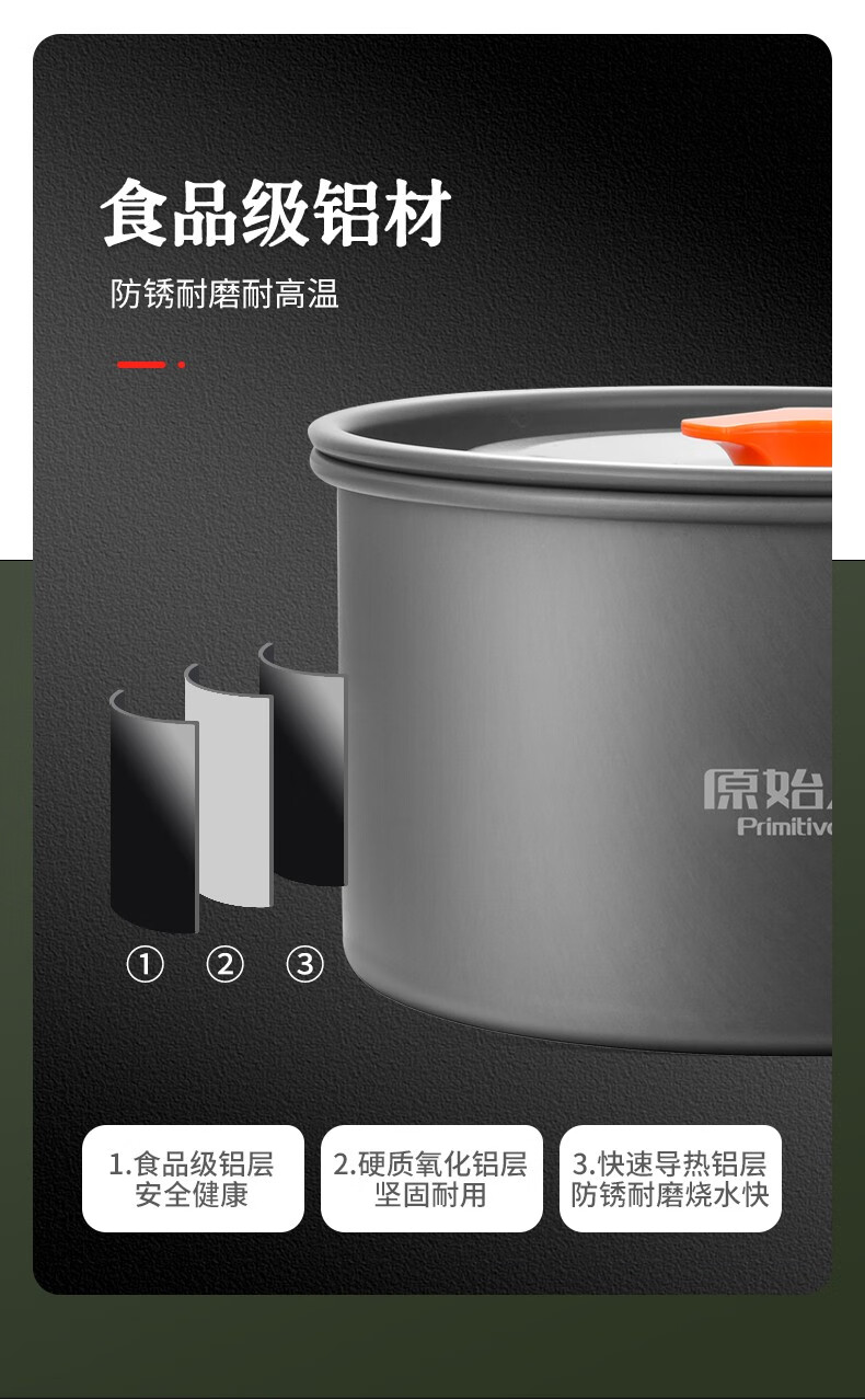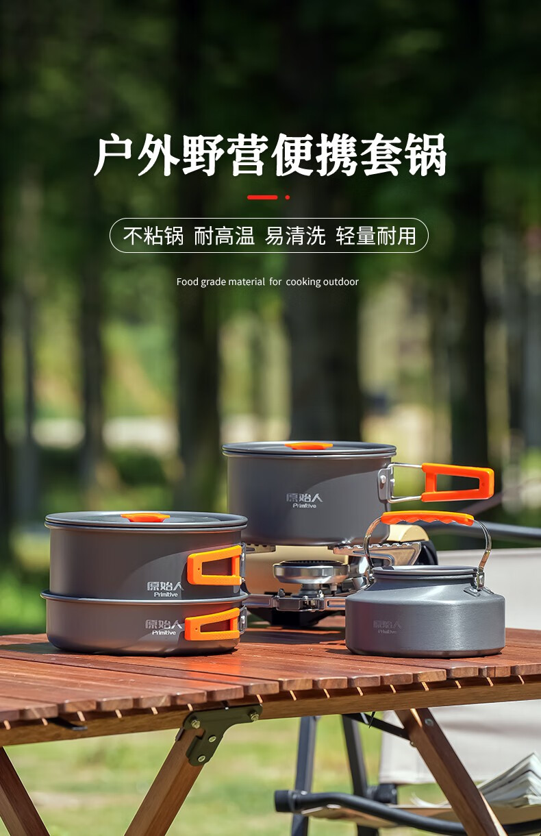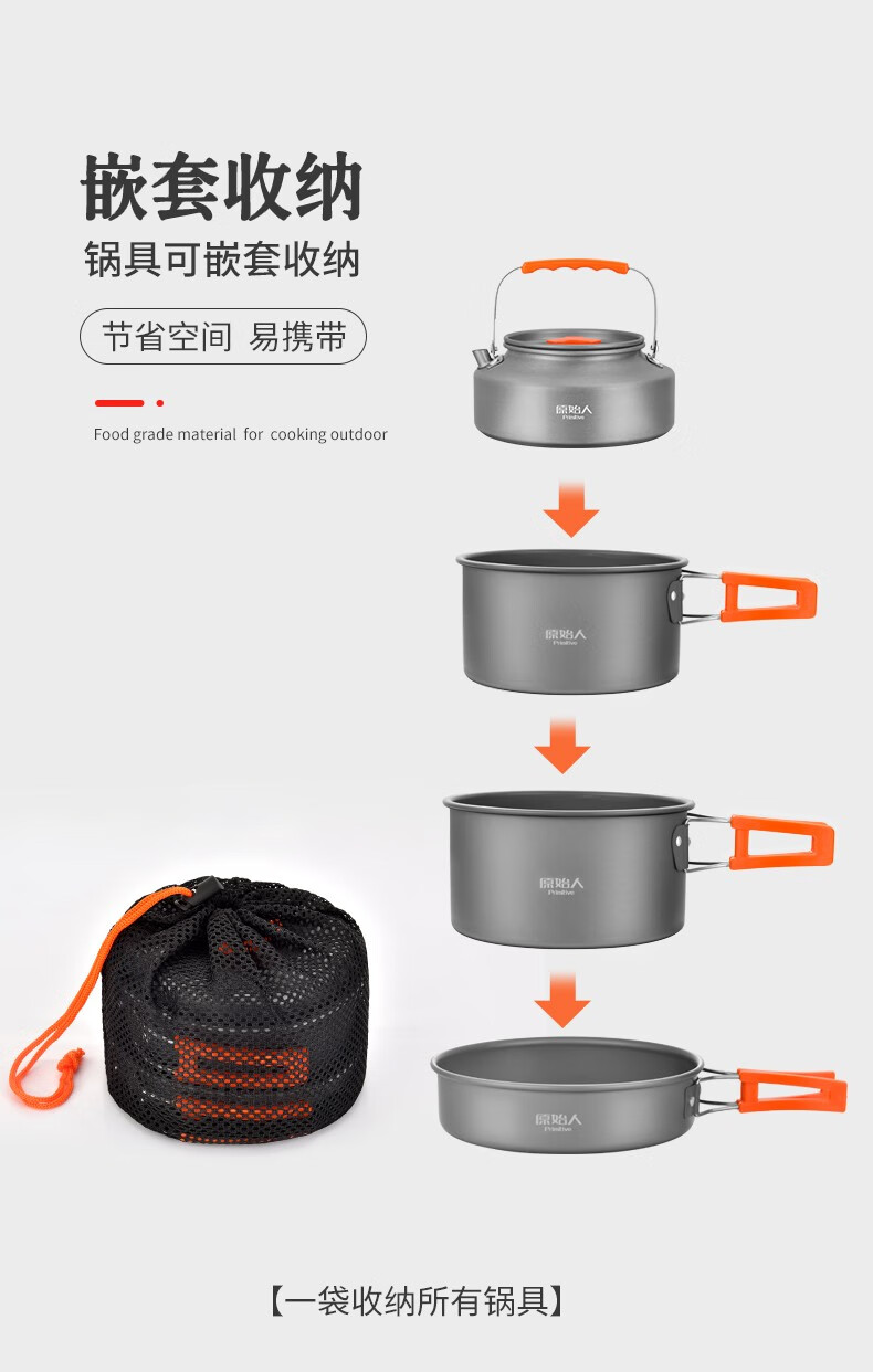 原始人 露营炊具户外锅具装备便携野外野营套锅用品 4-7人全套组合(详见配置图)