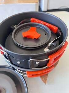 适用场景:户外露营的壶和锅终于到啦! 产品做工:做工看起来不错! 适用人数:我选的是两三个人的够用了。 重量大小:非常轻,收纳起来不占地方。还送了赠品碗和勺,非常期待出去野餐。物流到得也很快,比较愉快的一次购物。