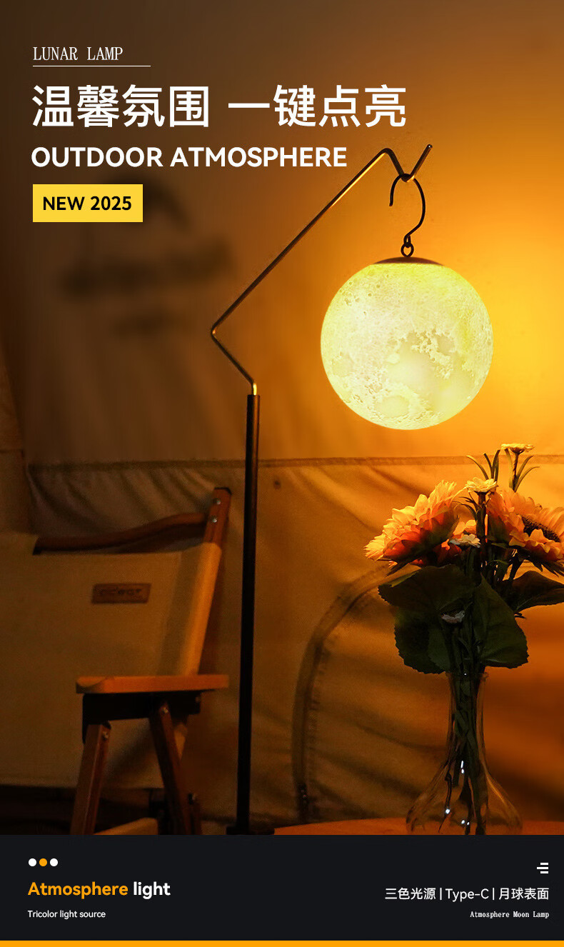 家人们谁懂啊!这月球露营灯绝了,三色光随意切换,调光顺滑,长续航也超省心,露营、家用都合适,闭眼入!