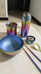好,很好的碗,非常不错,是存在的。嗯,喜欢纯钛餐具的建议,购买嗯,特别是如果对于表面清洗有一点要求的,还有对于美观有点要求的。嗯,买氧化过的彩色是比较好的选择