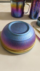 先后下单两款,大小各一件,双层钛碗,精美耐用,确实隔热,上蒸锅,传热也比瓷碗还偏慢。旅行家用 都好! 工艺讲究,整体无缝,便于层叠收纳。碗身没有关系“钛途”的logo 标识,有点可惜,其实加上也很精美。 拿美金灿的碗寓意好,心情好!