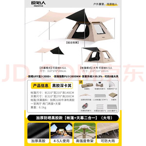 原始人帐篷户外折叠便捷式天幕一体自动露营防晒野外野营装备全套 加大号【帐篷+天幕】+防潮垫