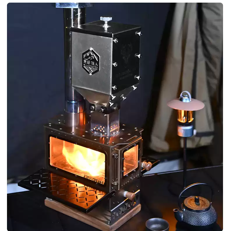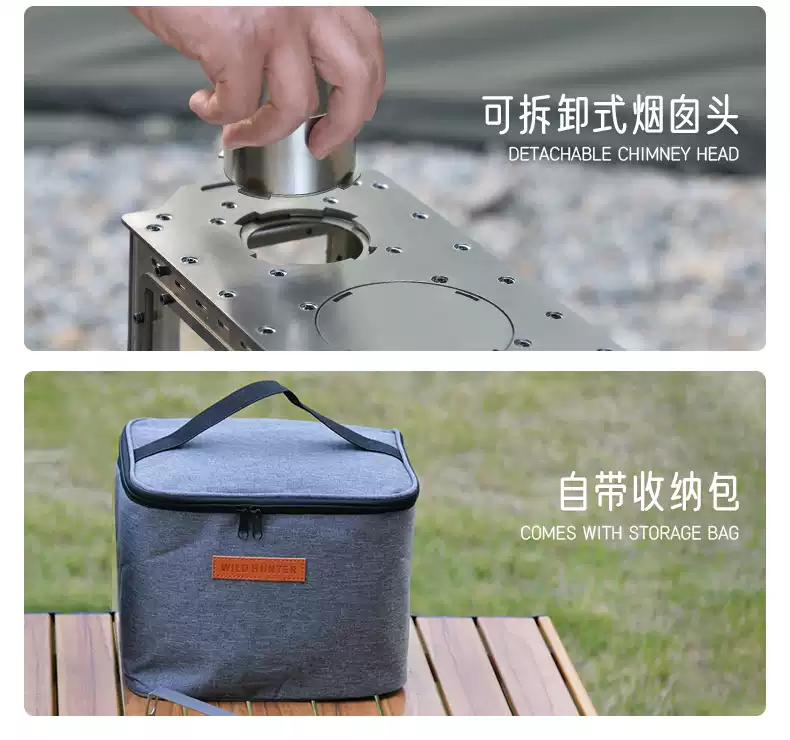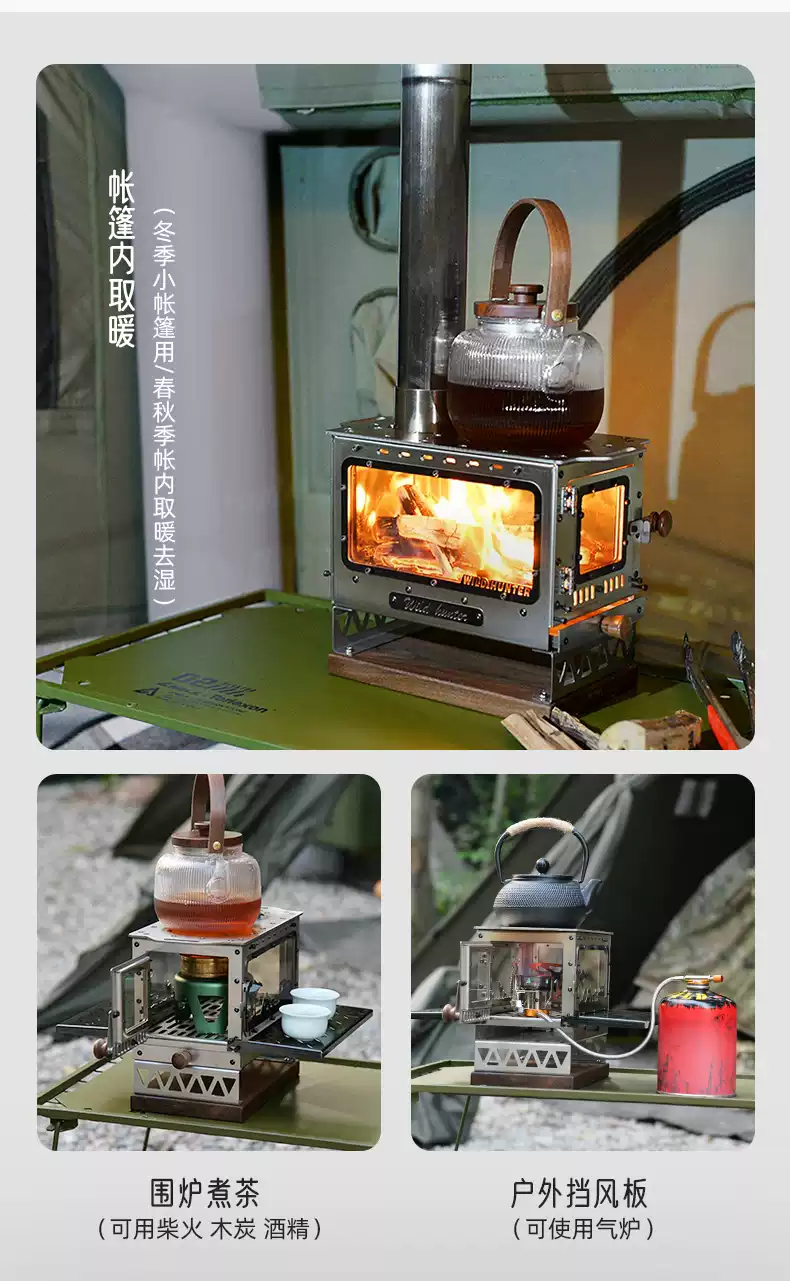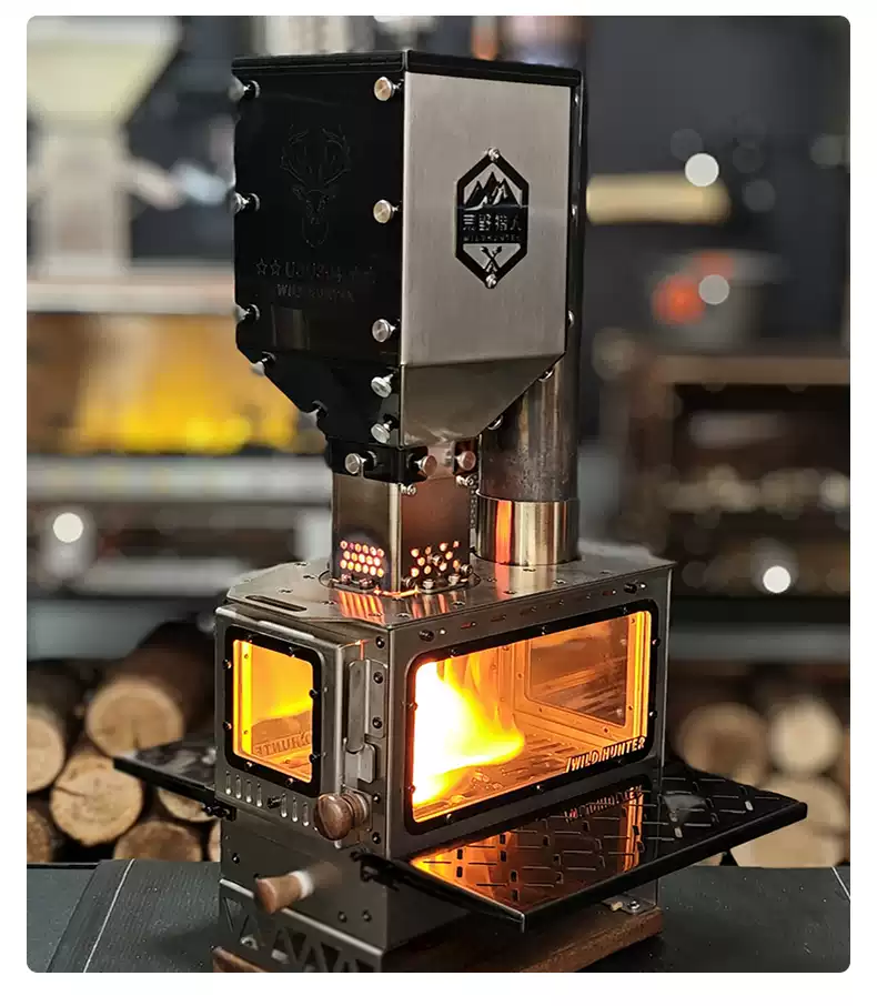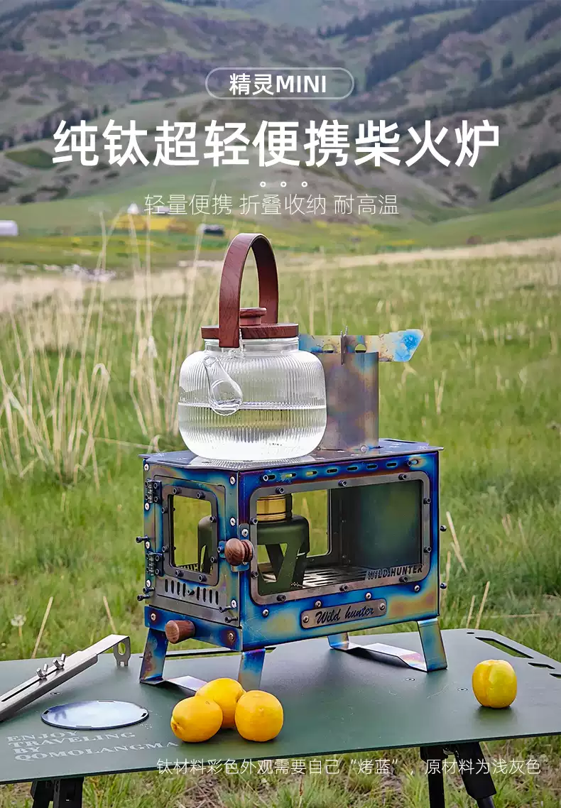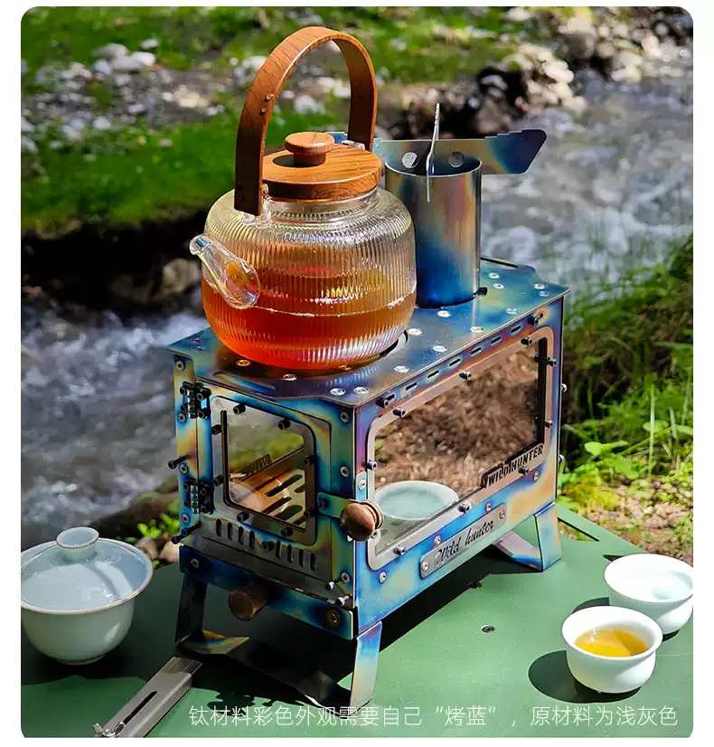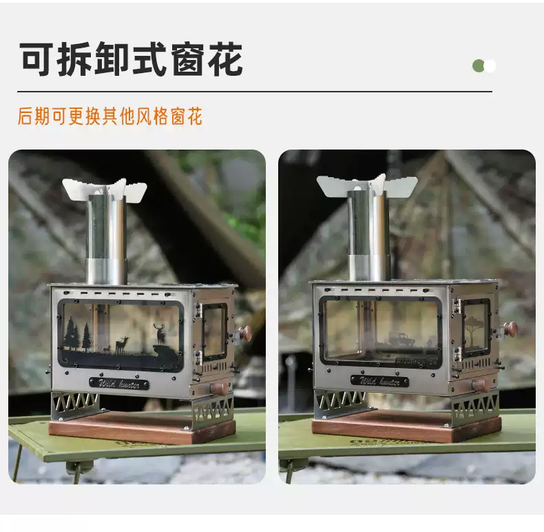 荒野猎人纯钛大壁炉3面观火取暖户外野餐柴火灶轻量露营帐篷颗粒柴火炉 (纯钛)鲲鹏Pro 大壁炉--标配