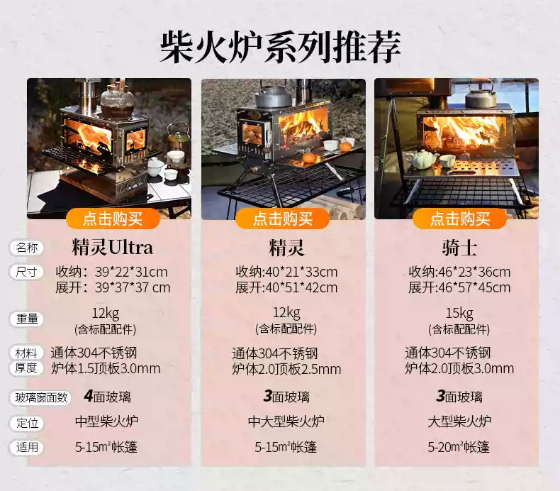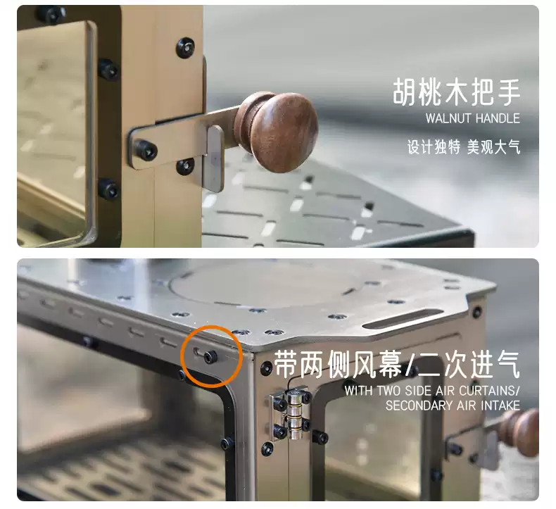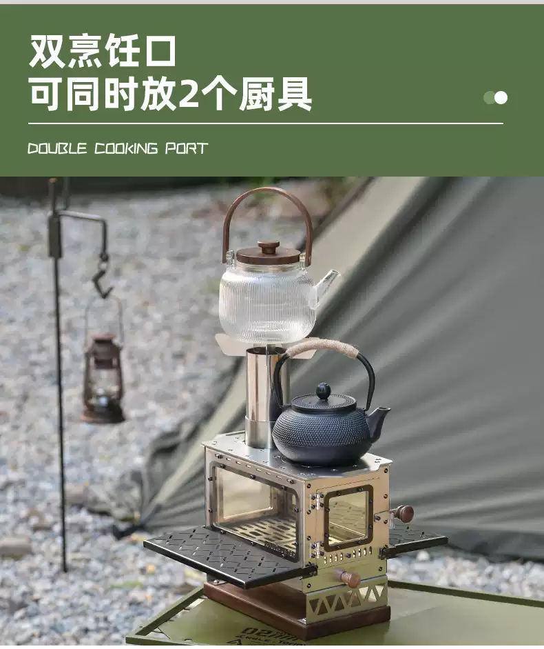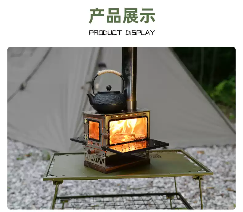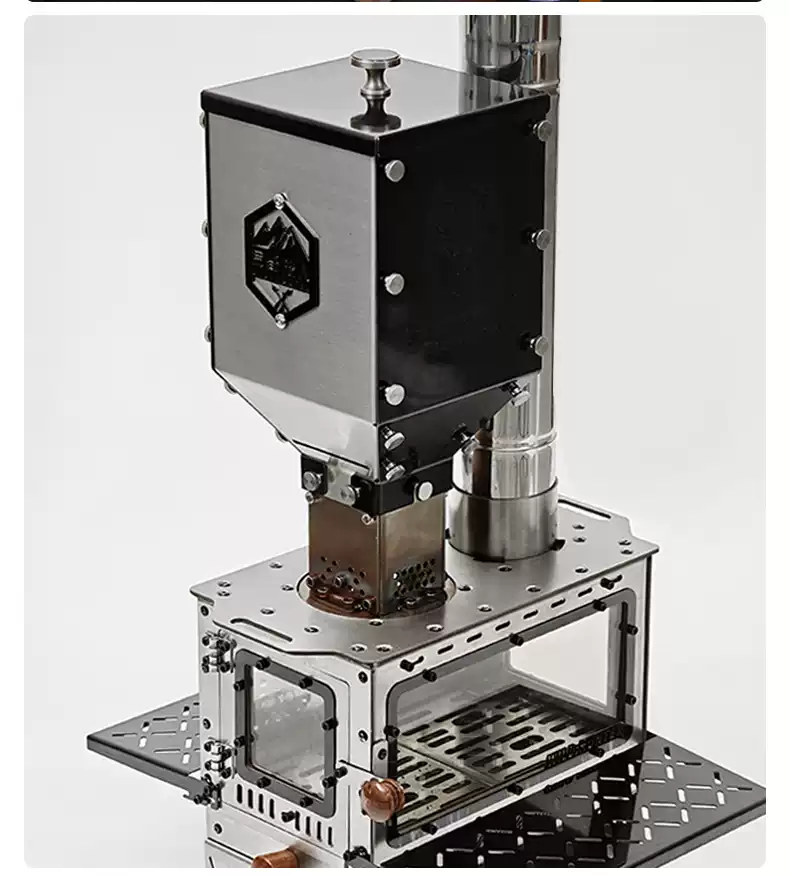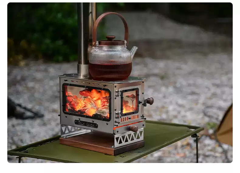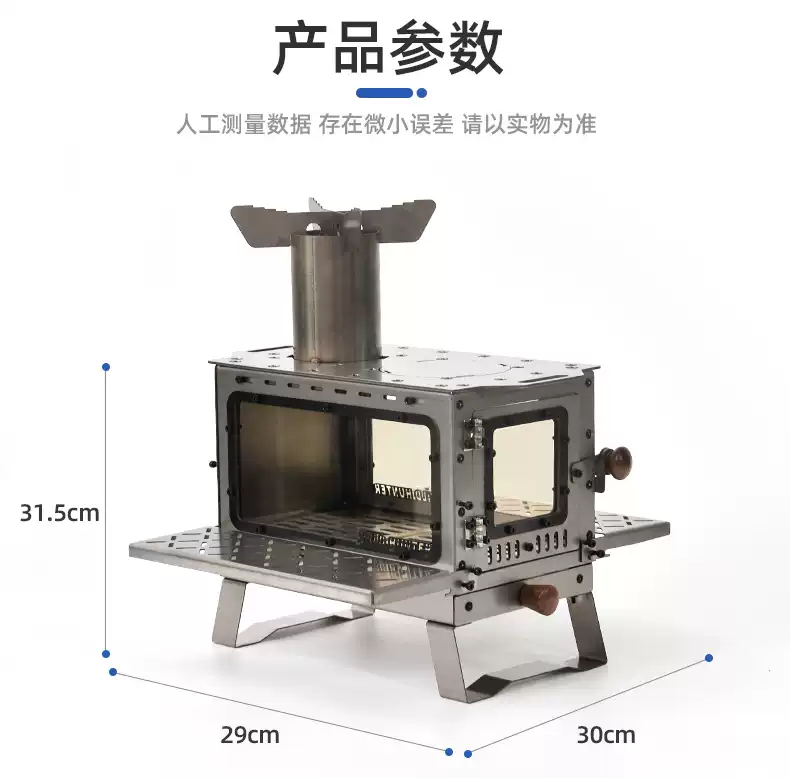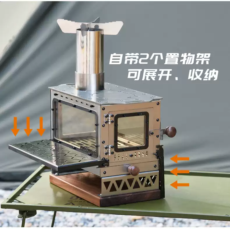 荒野猎人纯钛大壁炉3面观火取暖户外野餐柴火灶轻量露营帐篷颗粒柴火炉 (纯钛)鲲鹏Pro 大壁炉--标配