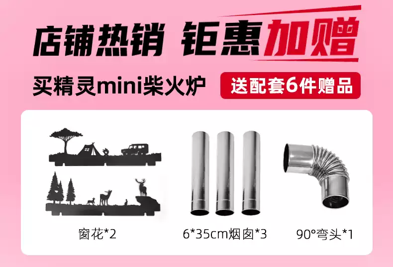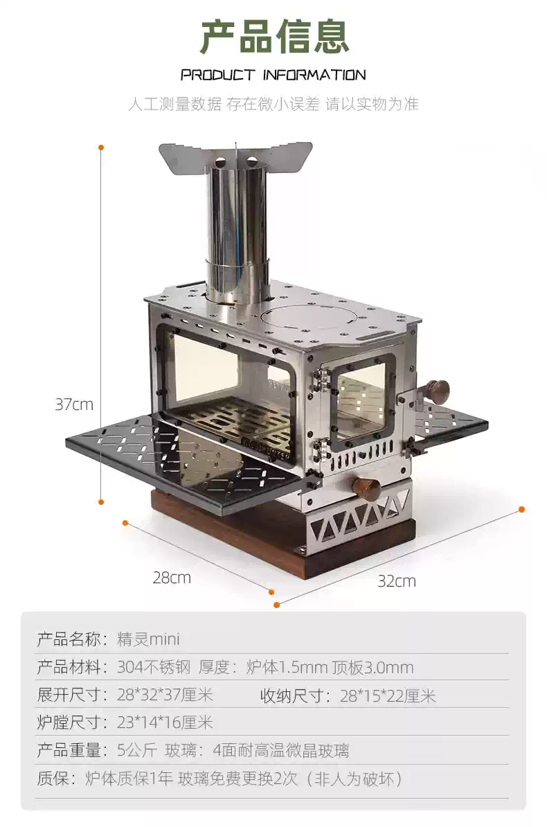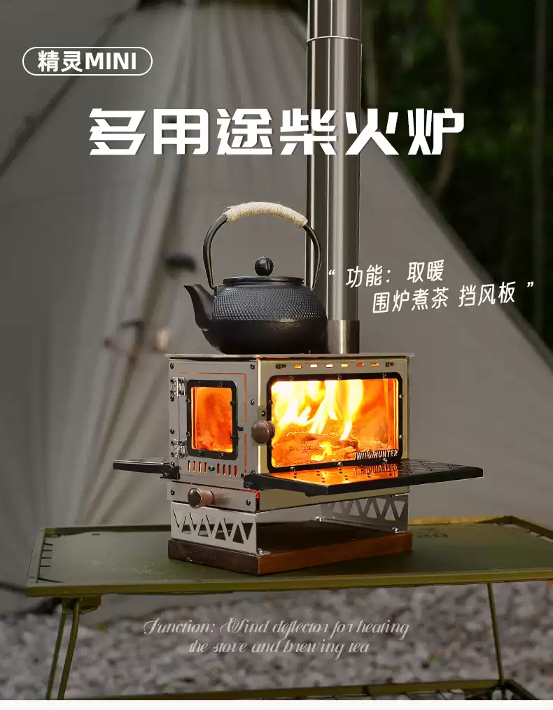荒野猎人户外精灵迷你柴火炉露营帐篷取暖桌面小壁炉便携野餐炉具 精灵mini柴火炉---标配
