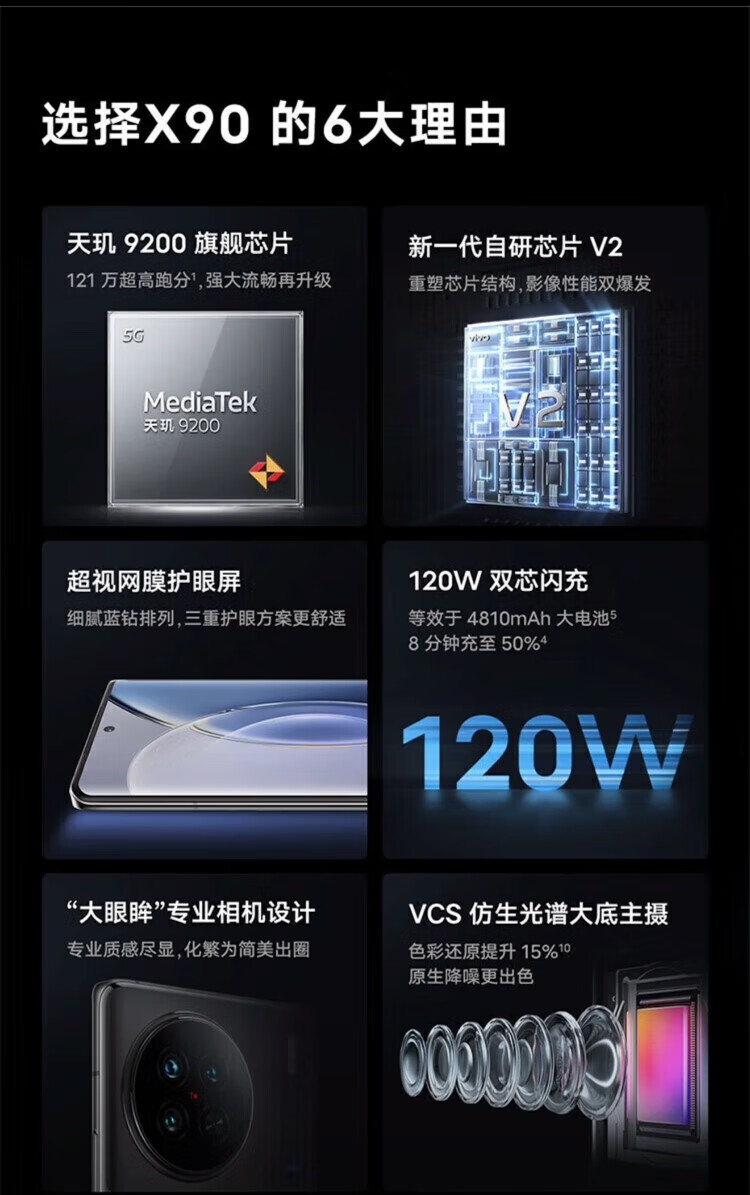 vivoX90 天玑9200处理器120W双芯闪充5G全网通拍照自研芯片V2芯片 华夏红 8GB+256GB 单机+赠送第三方品牌快充
