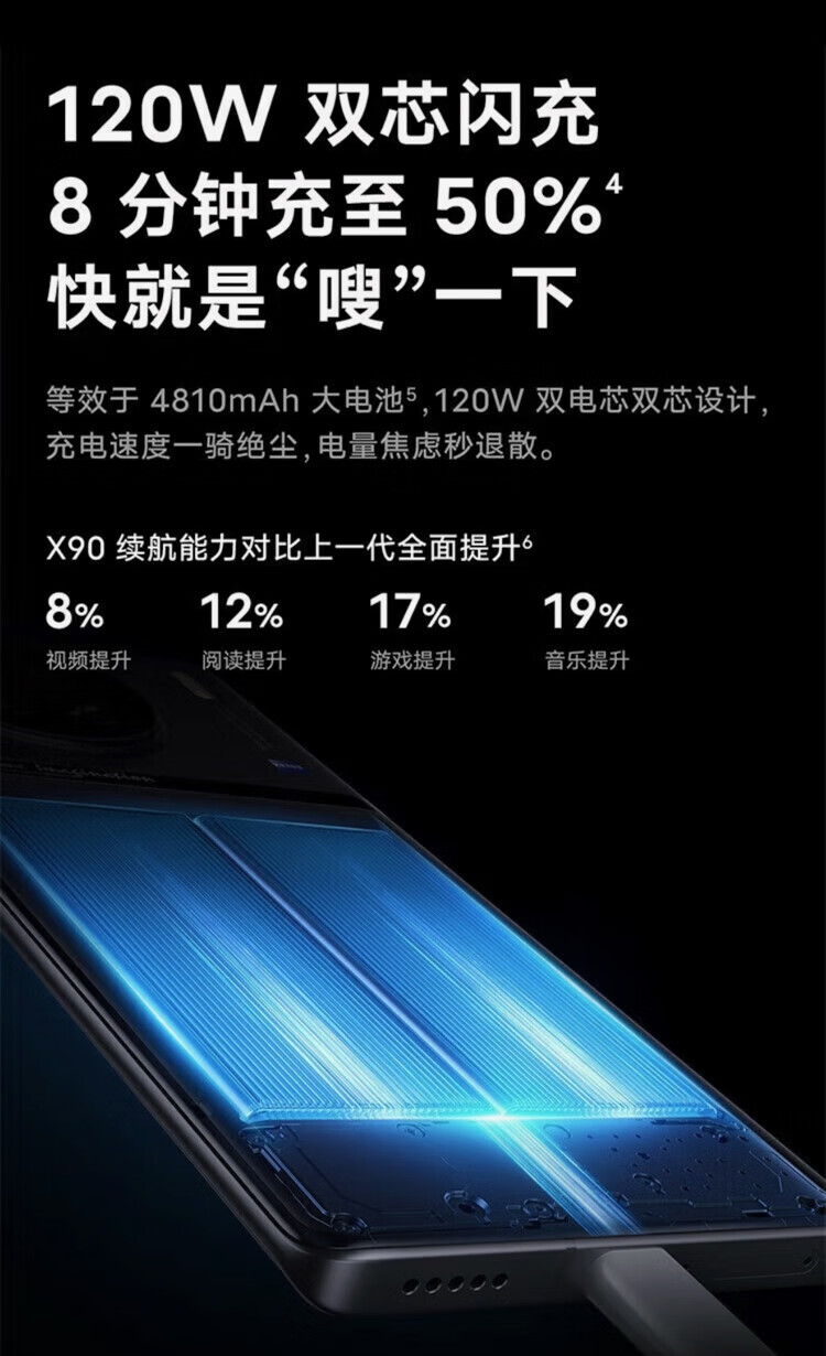 vivoX90 天玑9200处理器 120W双芯闪充 5G全网通 拍照自研芯片V2 冰蓝 12GB+512GB 单机+第三方品牌快充+店保1年