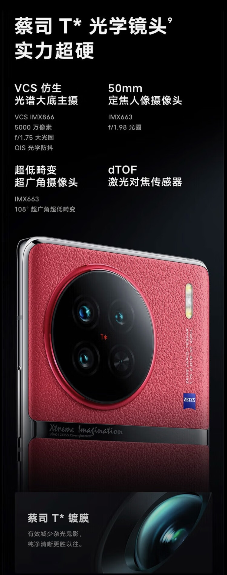 vivoX90 5G全网通 天玑9200芯片 120W双芯闪充 蔡司光学镜头 X90 华夏红 12GB+512GB 单机+第三方品牌快充+店保1年