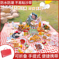 惠利得野餐垫户外防潮垫便携春游地垫野餐布ins风露营垫子郊游野炊用品 【黄格】加厚 【大号】200X200CM(坐8人)