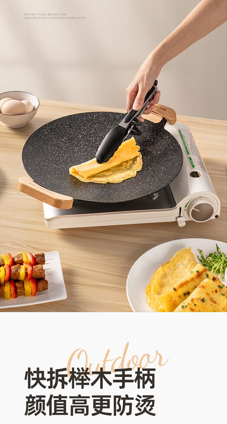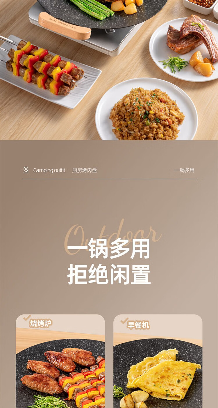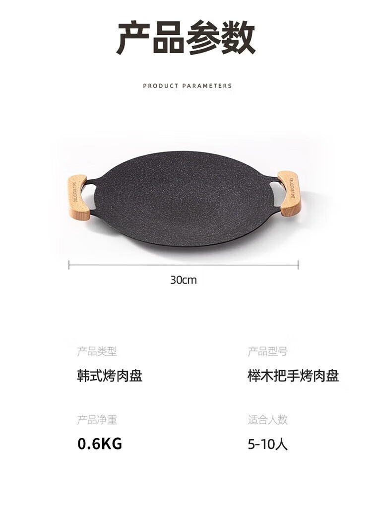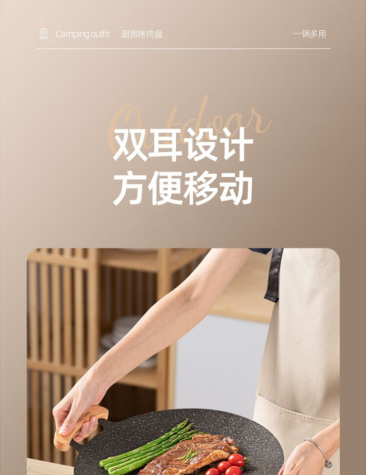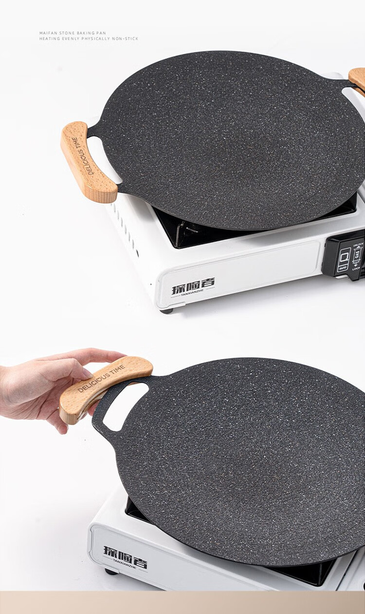 这个烤盘太适合家庭聚会了!30cm的尺寸刚好,麦饭石材质确实不粘,烤肉基本不用放油,清洗起来非常省事。榉木把手有效防烫,设计贴心。受热很均匀,烤东西不容易糊。唯一就是明火款需要搭配卡式炉使用,但换来的是无烟清爽的烧烤体验,很值得。