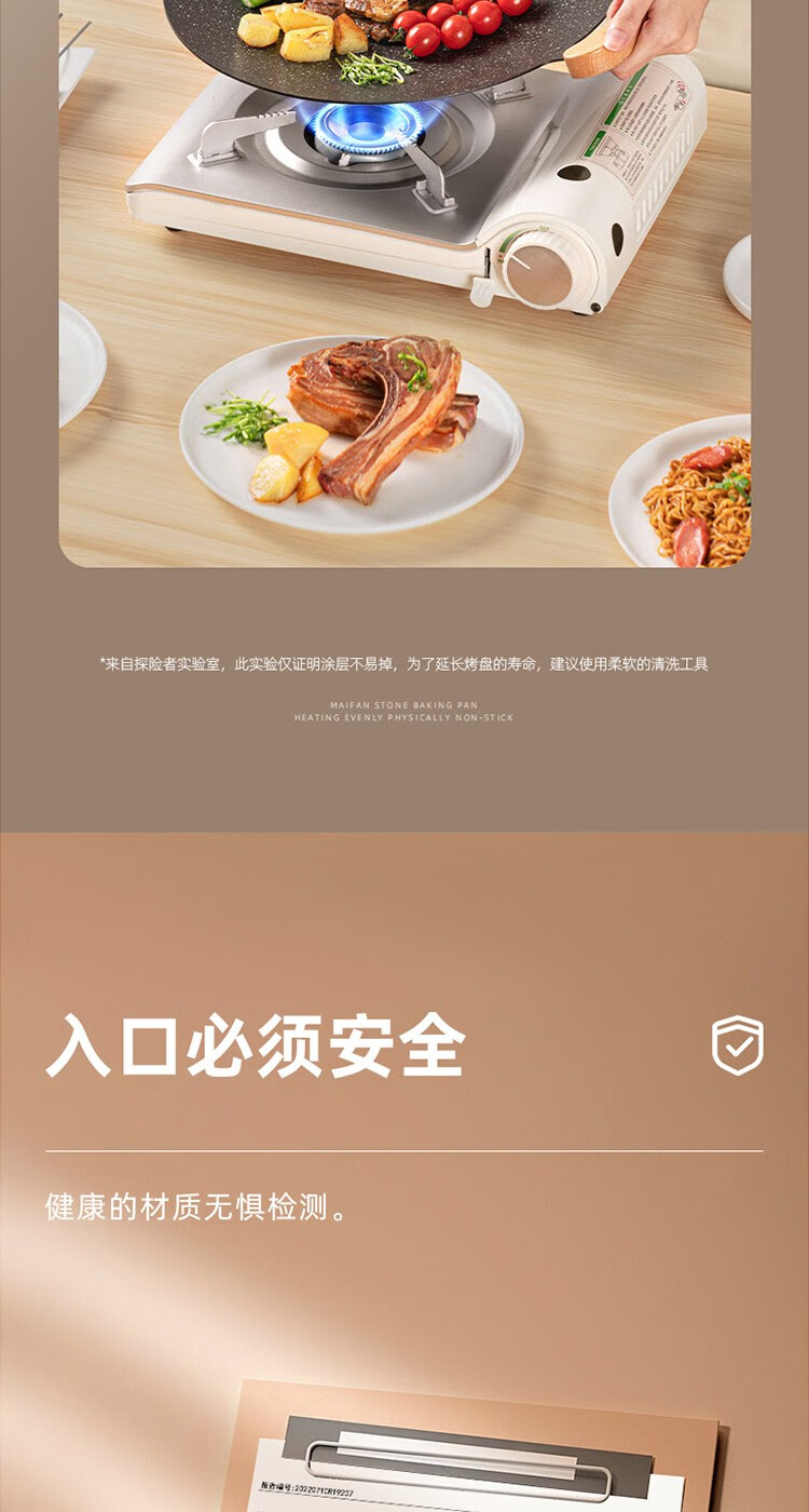 不粘锅挺好的,也好轻薄加热速度快,大小也是合适的,不会太大挡着气罐有安全隐患,整体来说都是比较合适的。活动的时候买的性价比也很高,推荐