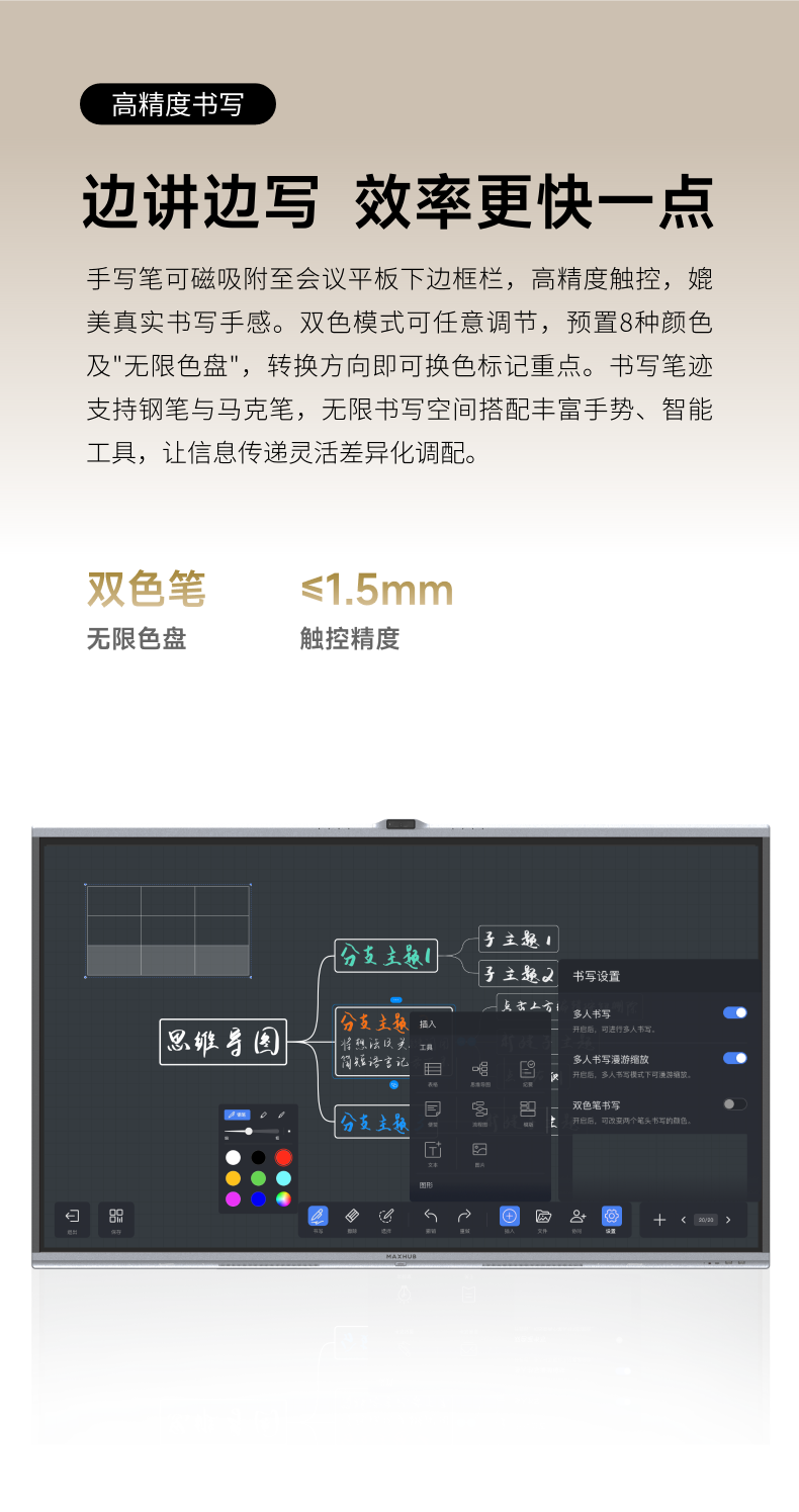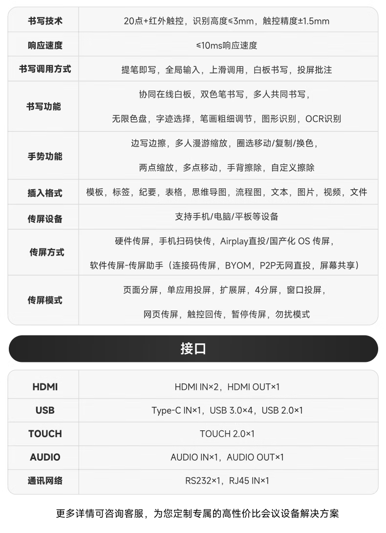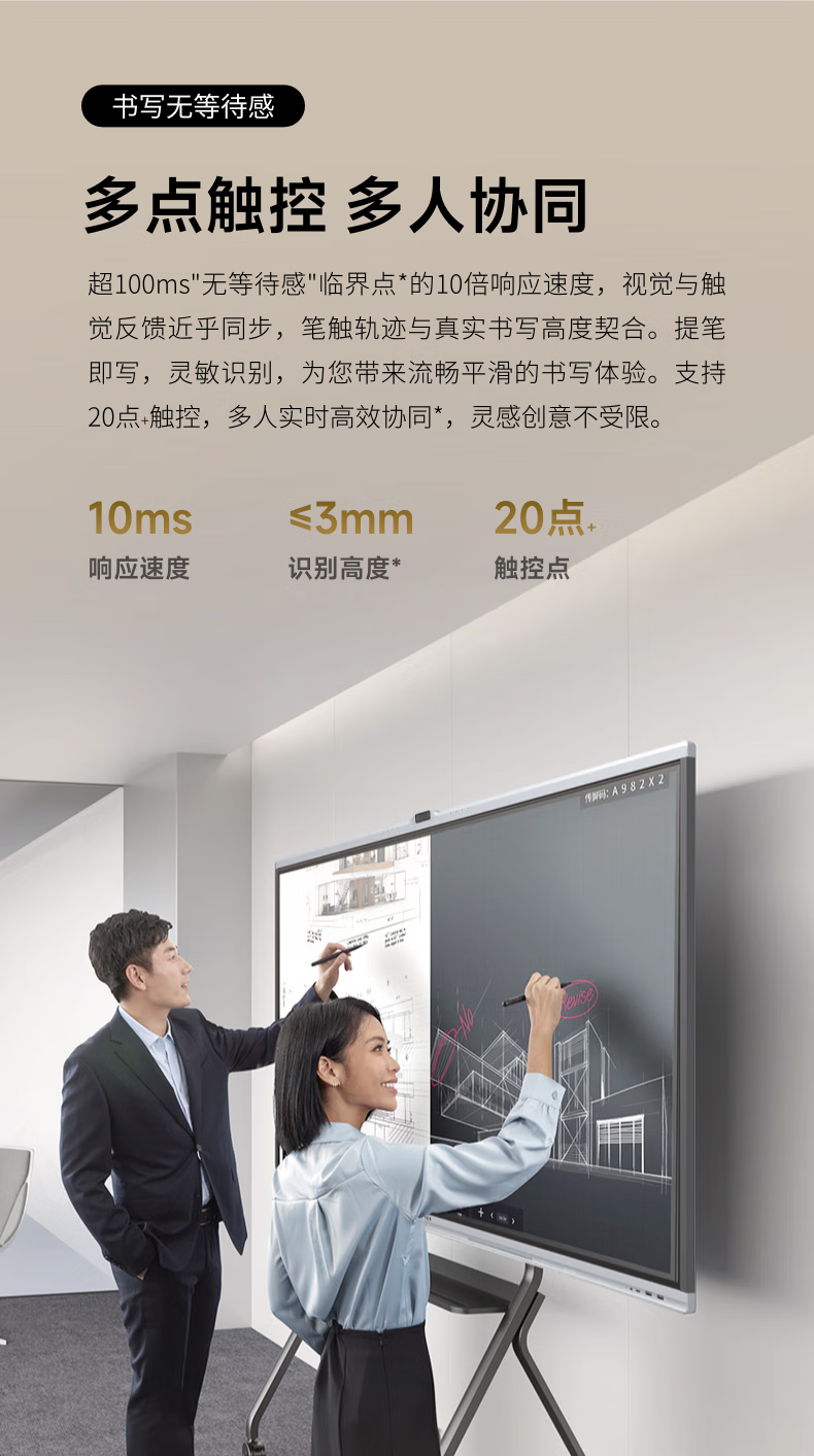 功能丰富,屏幕亮度高不刺眼、屏幕显示细腻,支持手写、保存到手机,会议投屏支持电脑和手机,送货速度很快,非常满意