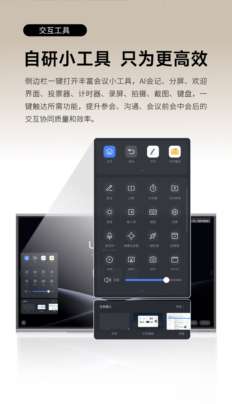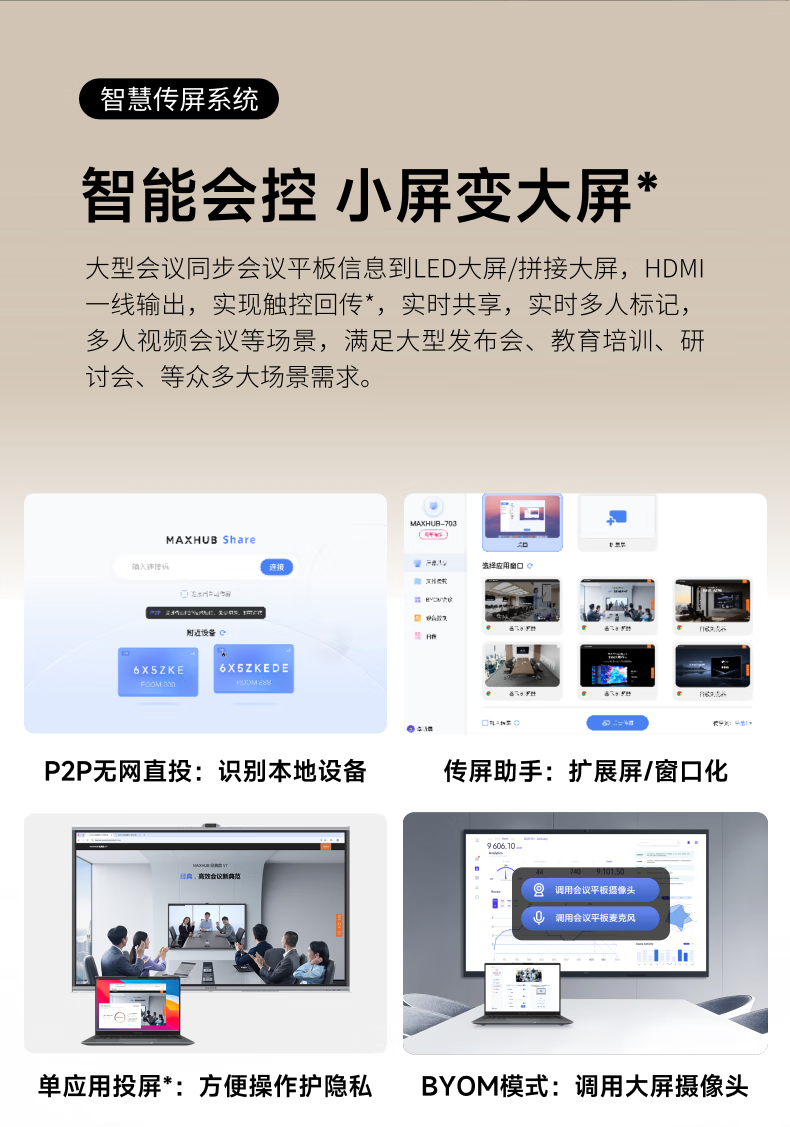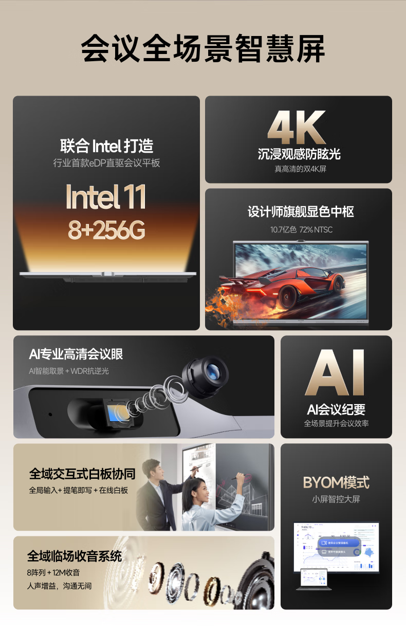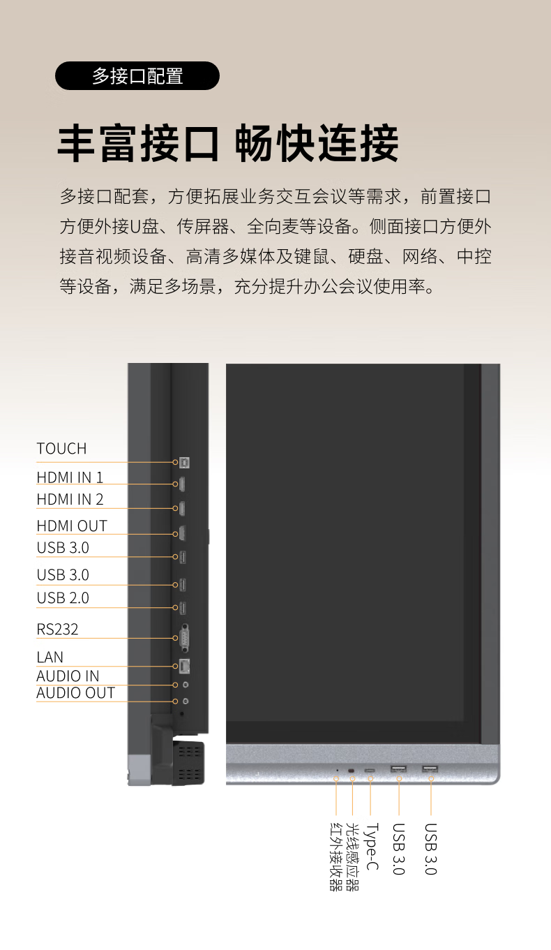 功能丰富,屏幕亮度高不刺眼、屏幕显示细腻,支持手写、保存到手机,会议投屏支持电脑和手机,送货速度很快,非常满意