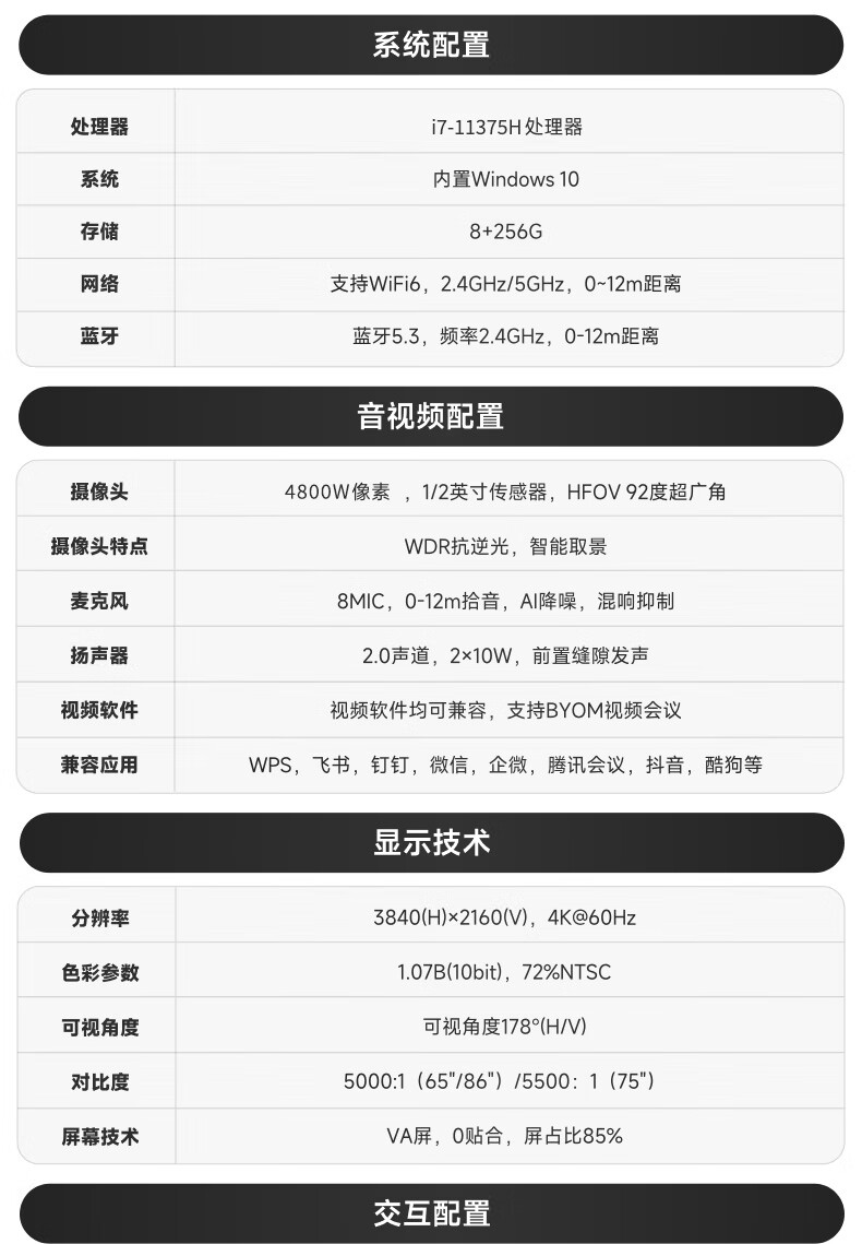 公司买的。为了迎接客户审核提升档次,方便开视频会议。买的windows版的功能确实强大,培训,视频会议都很方便。4k的画面清晰,安装小师傅也很耐心的给我们讲解。