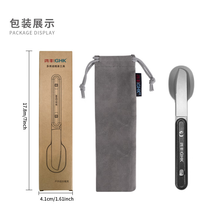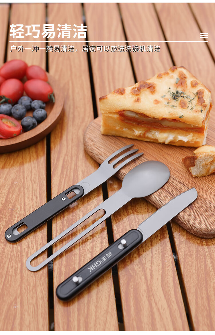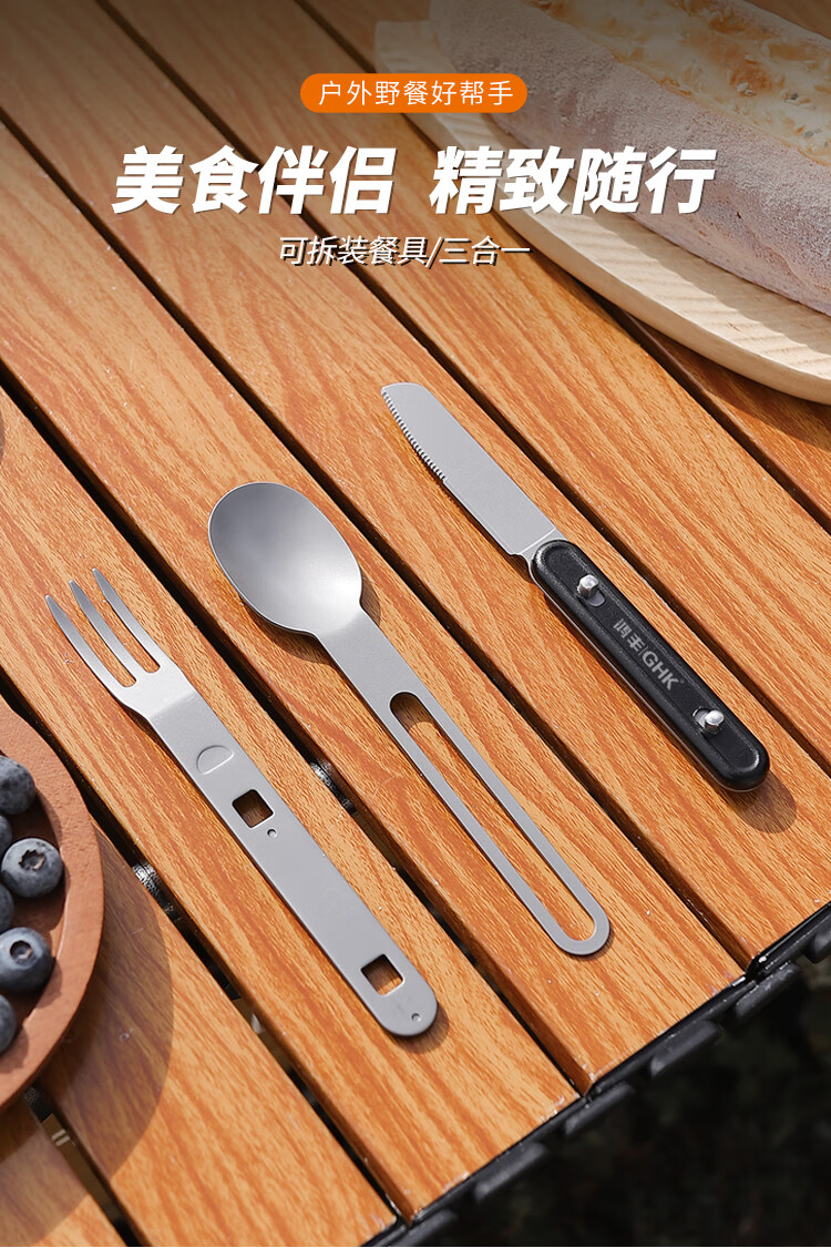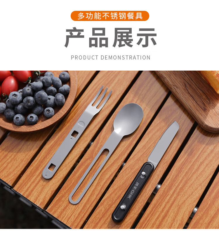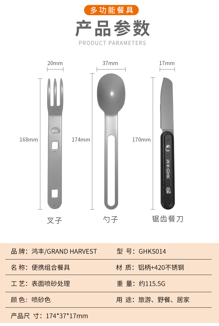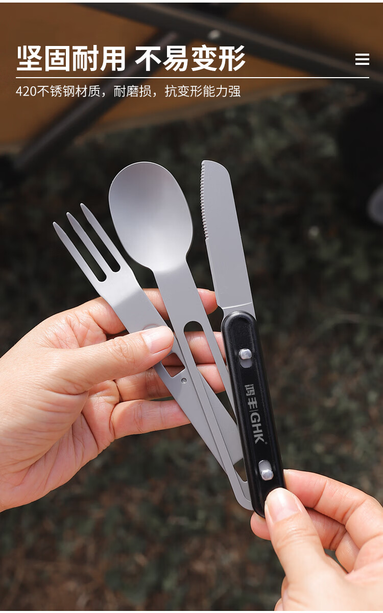 鸿丰GHK户外便携多功能叉勺露营餐刀小餐具野营小勺子不锈钢叉子 GHKS014