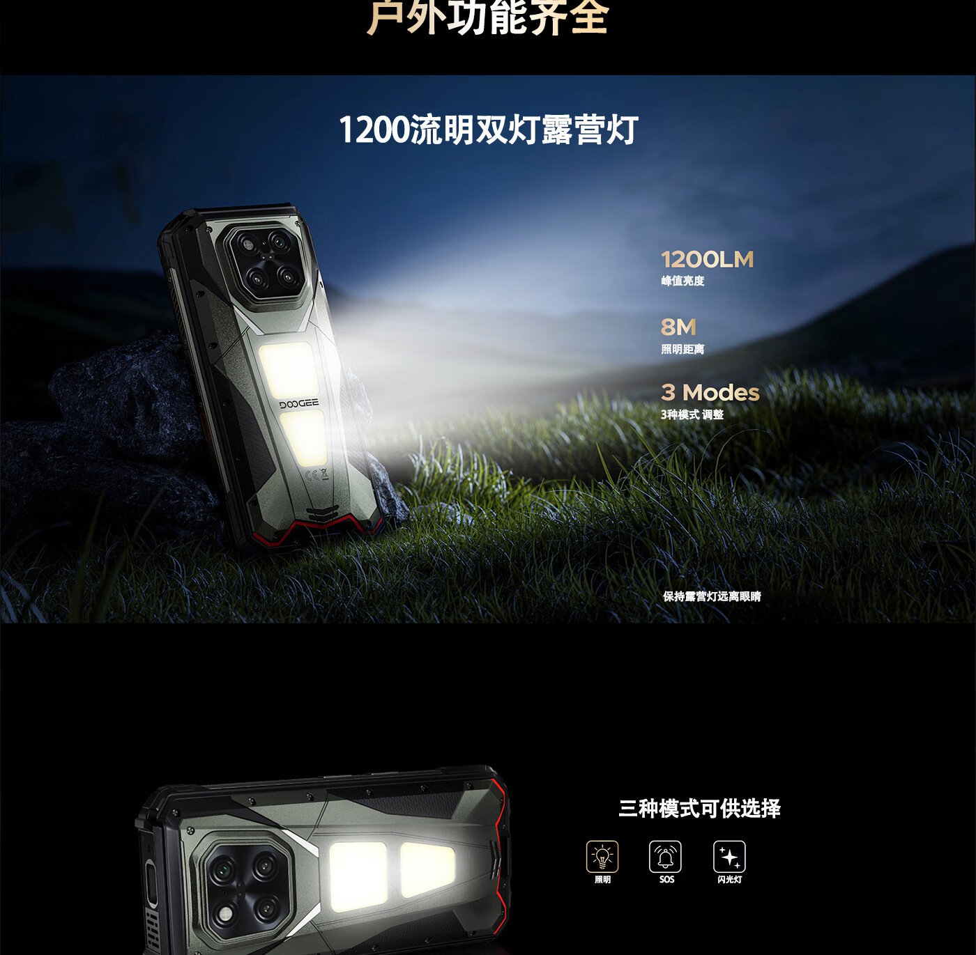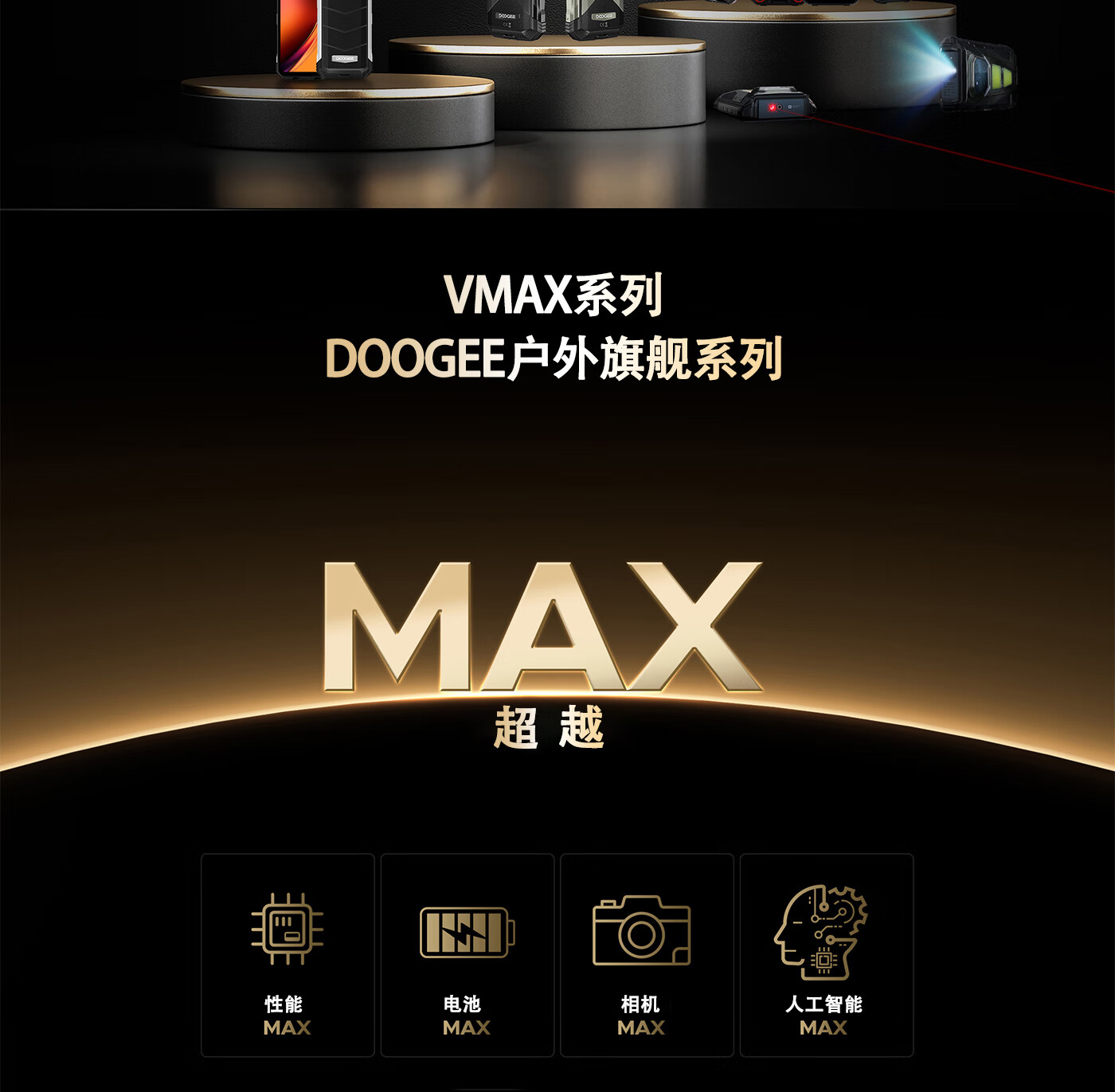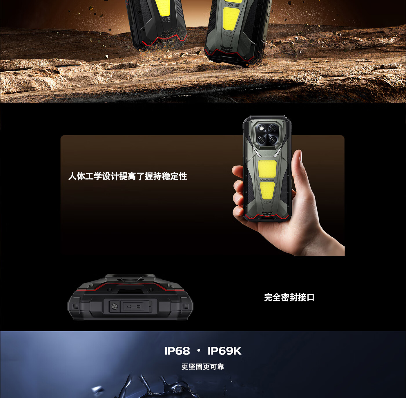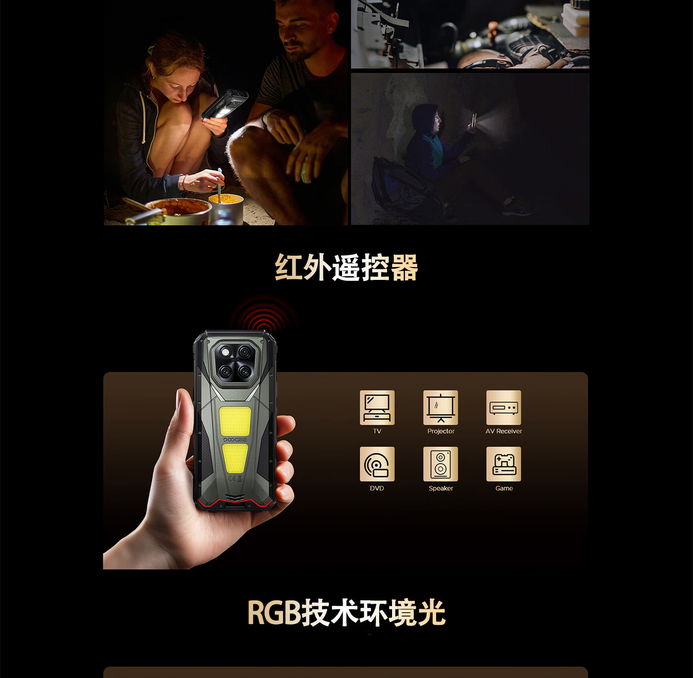 DOOGEE道格新款 VMaxPlay5G三防智能户外手机红外遥控LED投影480P自动对焦双露营灯20500mAh大电池长续航 V Max Play 黑色(36G+512G)