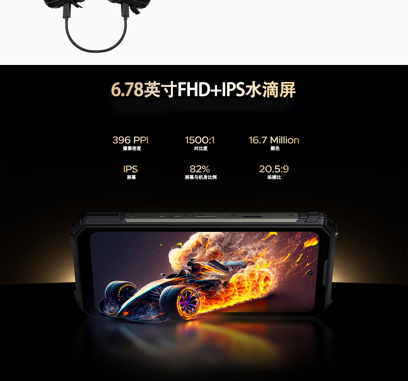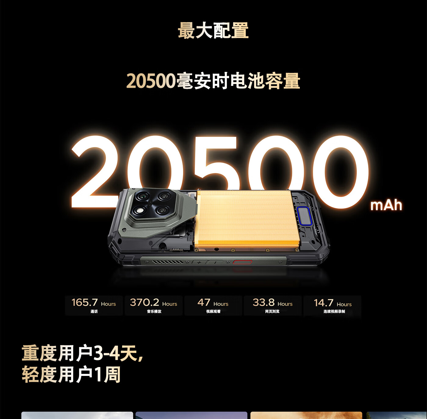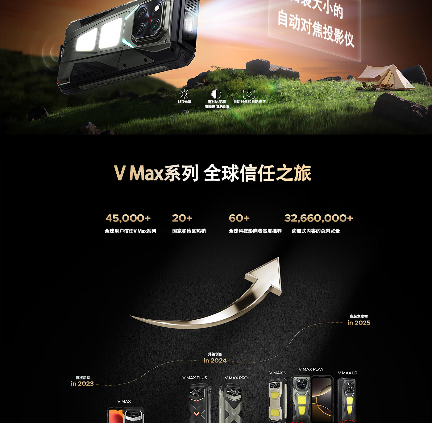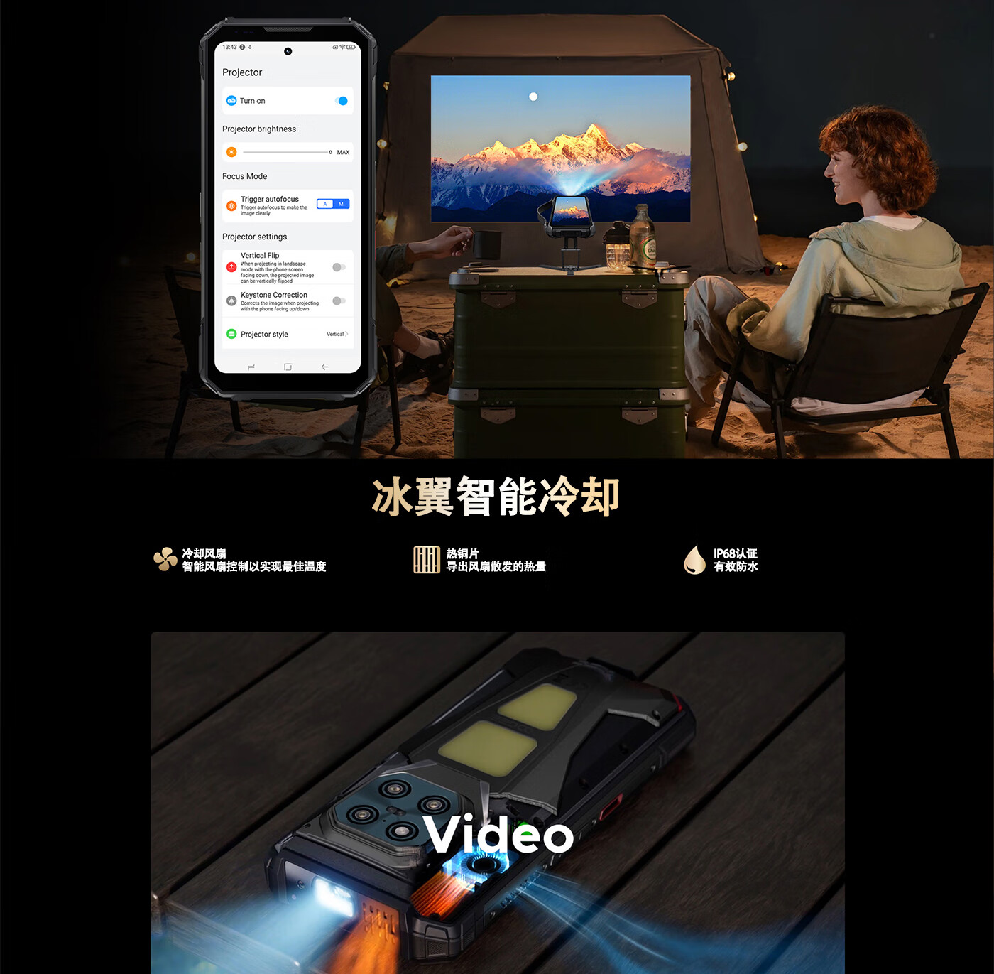 道格投影手机VMAX PLAY自动对焦480P高清投影三防智能手机20500超大电池长续航防水遥控NFC双露营灯5G 黑色【标配版】投影手机 36GB+512GB