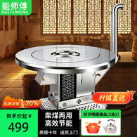 能师傅【送货上门】气化炉室内家用烤火炉节能无烟柴煤两用柴火炉灶农村 1.2米平转特厚不锈钢桌面【 6-8人 柴火炉】