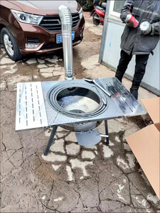 室内气化无烟取暖炉柴煤两用柴火灶水箱农村烧木柴煤炭移动大锅台 60CM 固定内胆款+3米2弯+