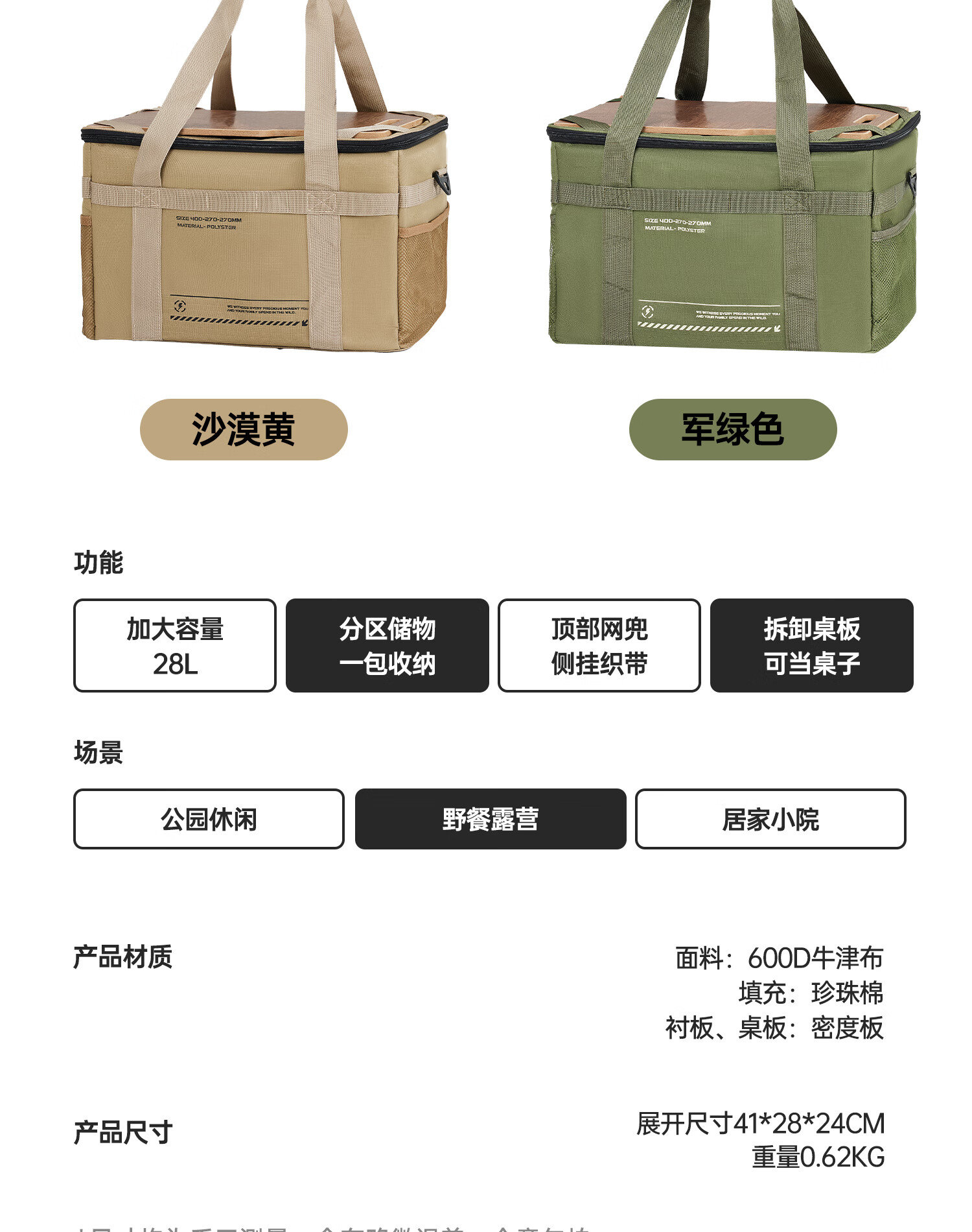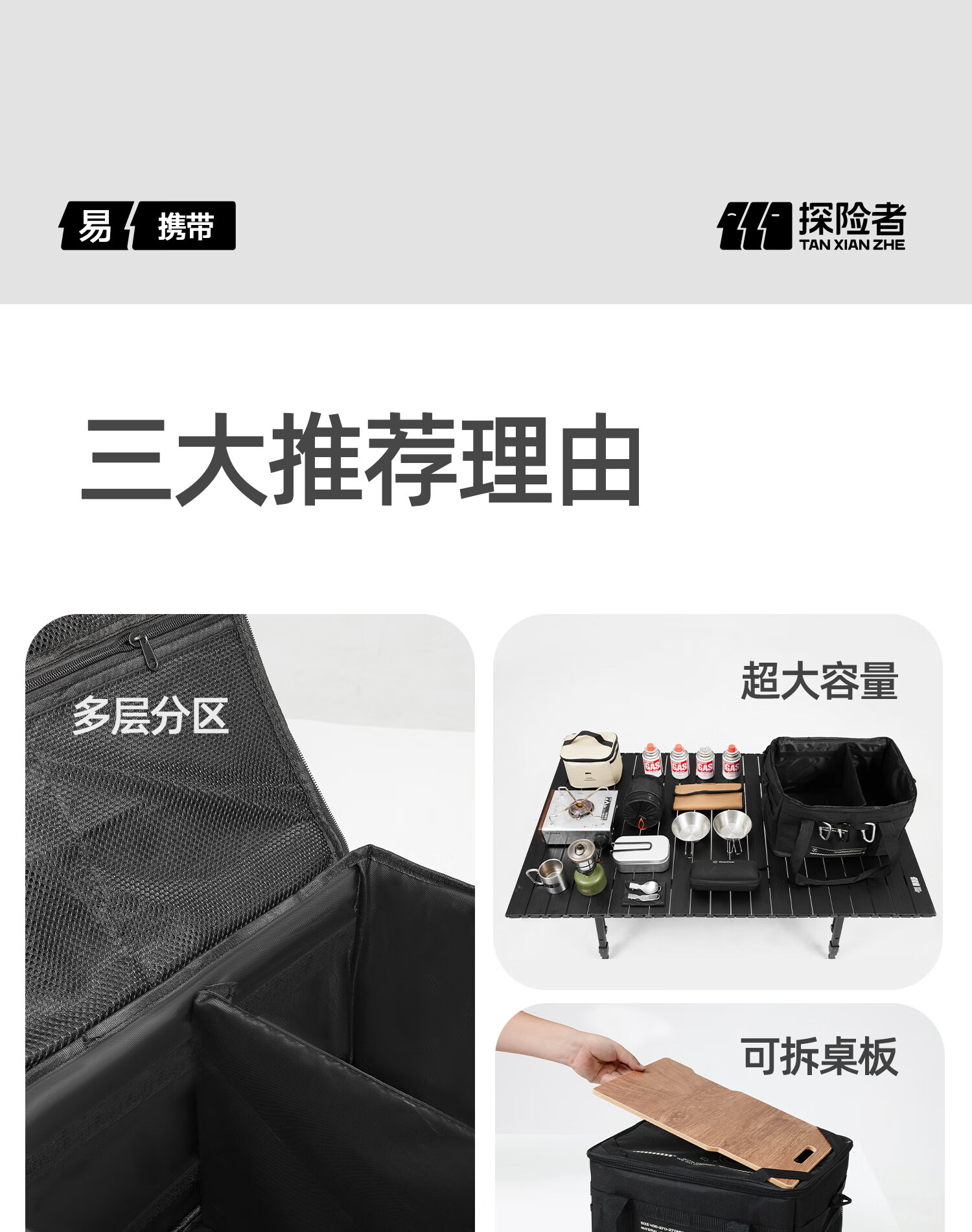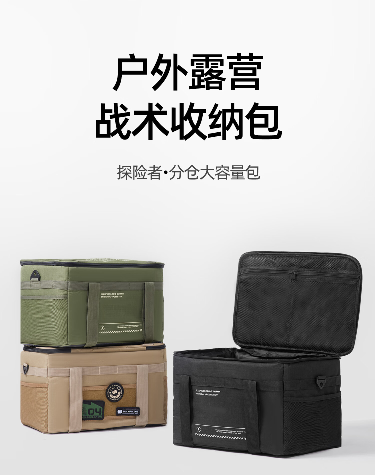 探险者(TAN XIAN ZHE)收纳包户外露营装备多功能大容量收纳袋餐具野餐餐具杂物包收纳箱 【黑色】多功能大容量收纳包
