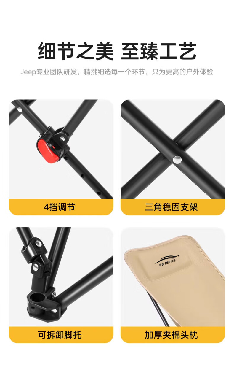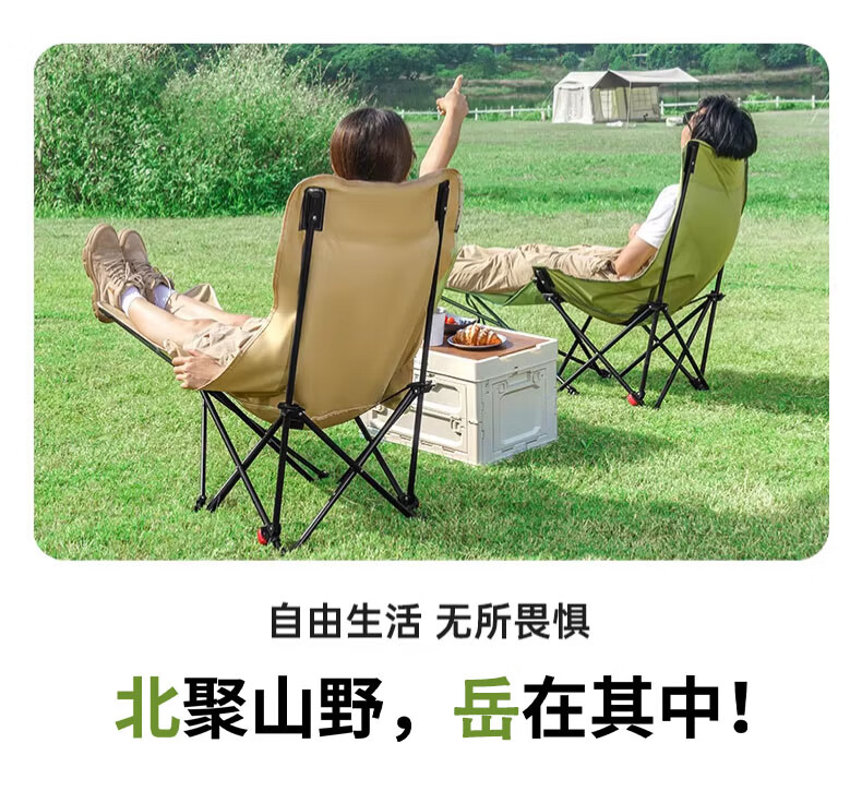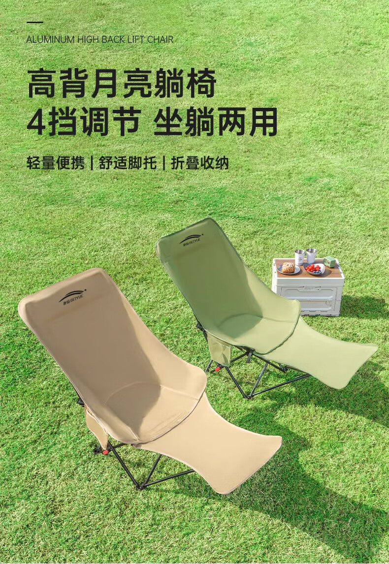 北岳户外折叠椅午休加高月亮露营椅便携钓鱼凳沙滩午睡躺椅野餐陪护椅 细沙黄-三挡可调节高背舒适