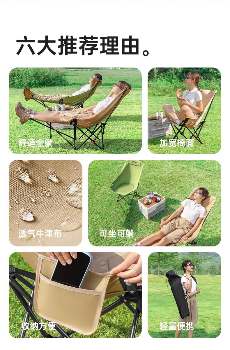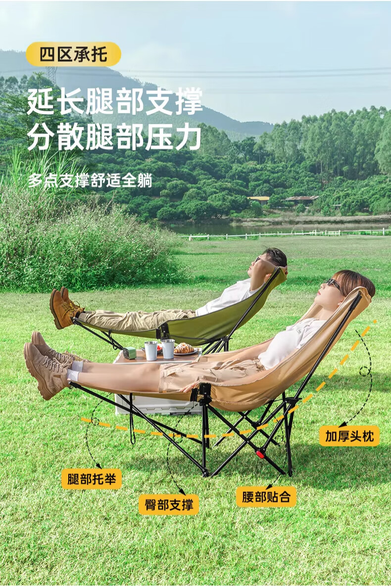 加高设计对大高个友好,多档调节想躺就躺,折叠便携,轻松调节角度,🌯🍥🍨坐着舒服,折叠后体积小易携带,露营沙滩必备。