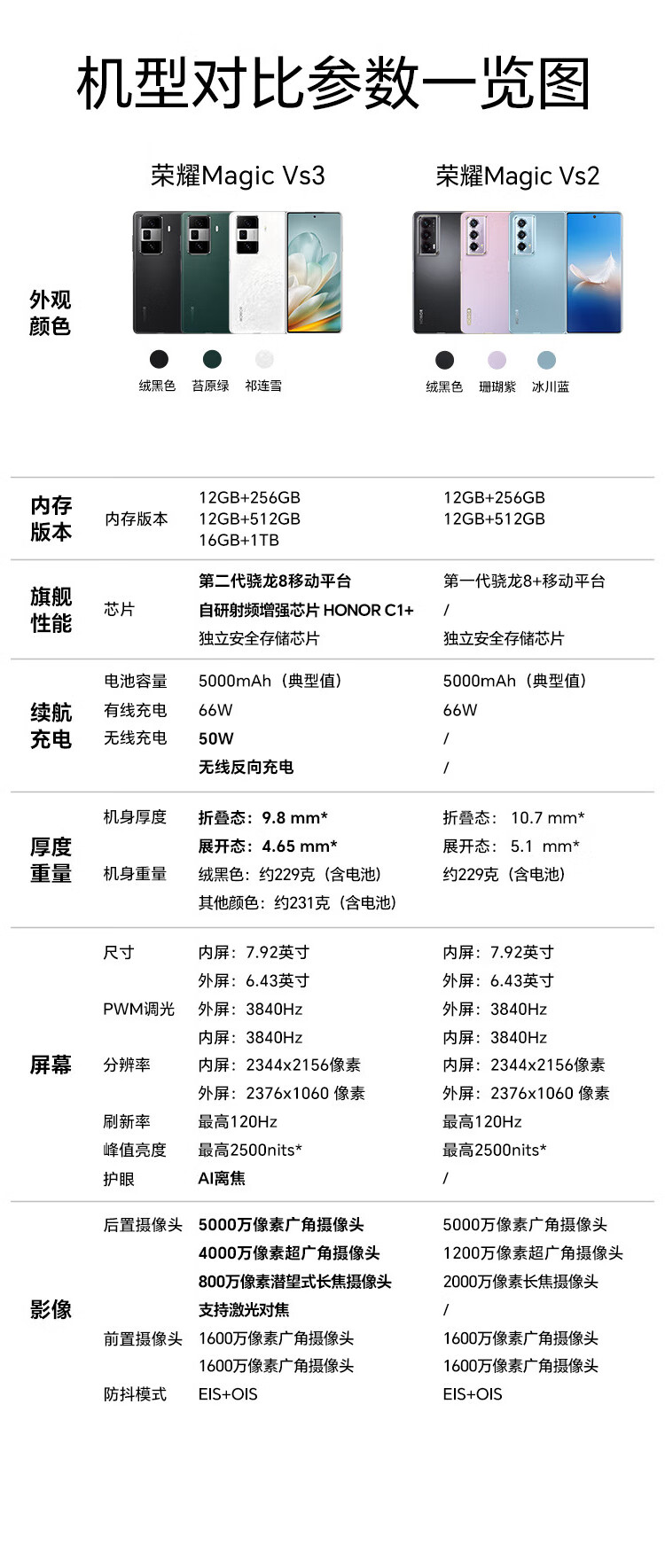 AI大模型,折叠屏,LTPO屏幕,高频PWM调光,潜望式长焦,NFC,红外遥控,大底主摄