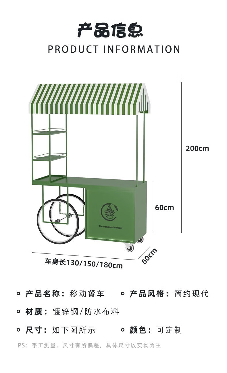 Manon Messiant餐车地摊花车摆摊小推车夜市促销车铁艺售货车户外移动小吃摊位车 颜色尺寸定制