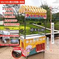 奴风夜市烤肠摆摊车可折叠新款移动小推车网红地摊奶茶熟食创业小吃车 100*50海报+橙白雨棚