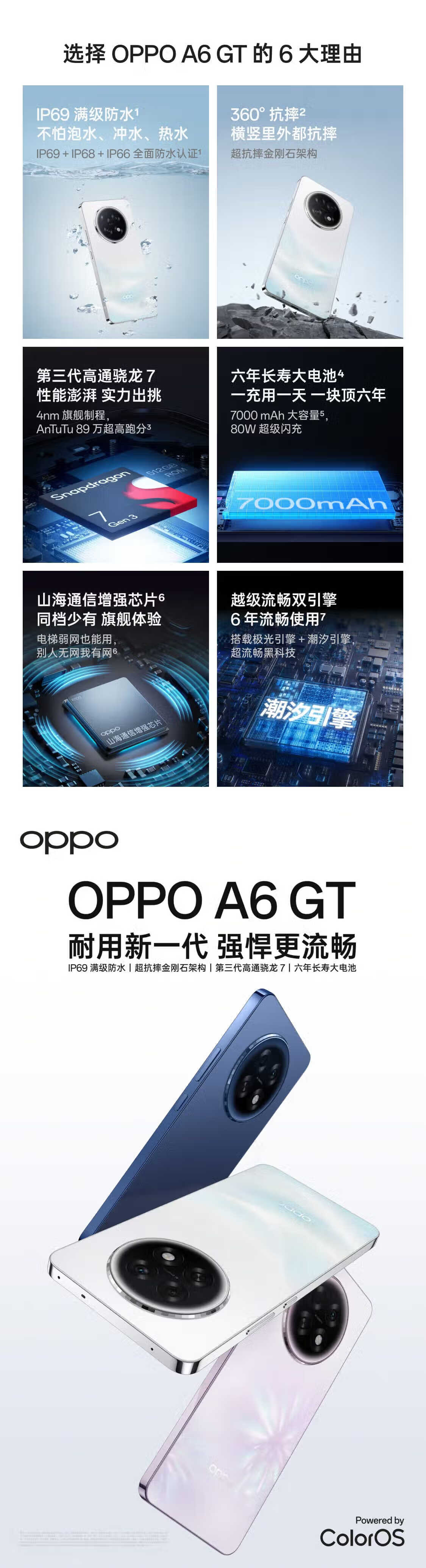 OPPOA6 GT 5G手机 IP69满级防水 超抗摔金刚石架构 第三代高通骁龙 7 流光白 12GB+512GB