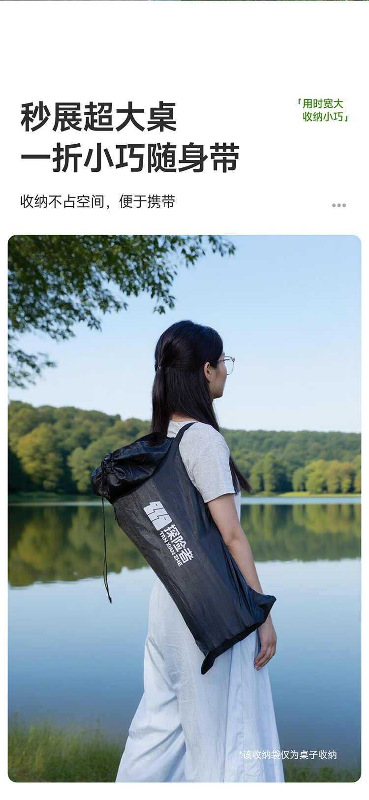 看到网络上很多人都购买了,用的反馈也都不错,试着买了一张,上次和朋友出去搭帐篷,正好用得上,搭的时候不难,最后收的时候桌脚用了点时间。用着不错,上面能放很多东西。