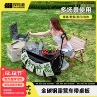 探险者户外露营装备全套七件套带桌板露营车桌椅套装可折叠收纳小推车 极光黑【静音万向轮+加厚车架】