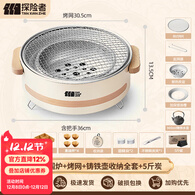 探险者围炉煮茶烧烤炉户外烧烤架露营烤肉炭火炉室内取暖炉围炉煮茶套装 围炉+烤网+铸铁壶收纳全套+5斤炭