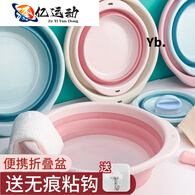 ZKHE户外旅行折叠脸盆塑料盆婴儿洗衣脸盆宿舍学生家用便携式加厚耐用 粉白色(小号)