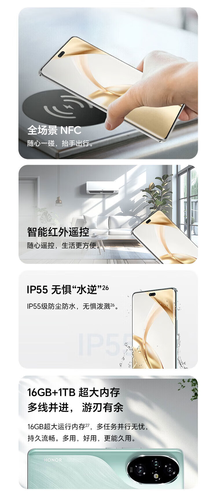 荣耀300Pro 单反级雅顾人像 绿洲护眼屏 第三代骁龙8 5GAI 墨岩黑 16GB+512GB 单机+第三方品牌快充+全国联保
