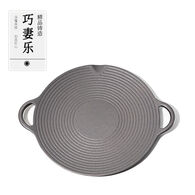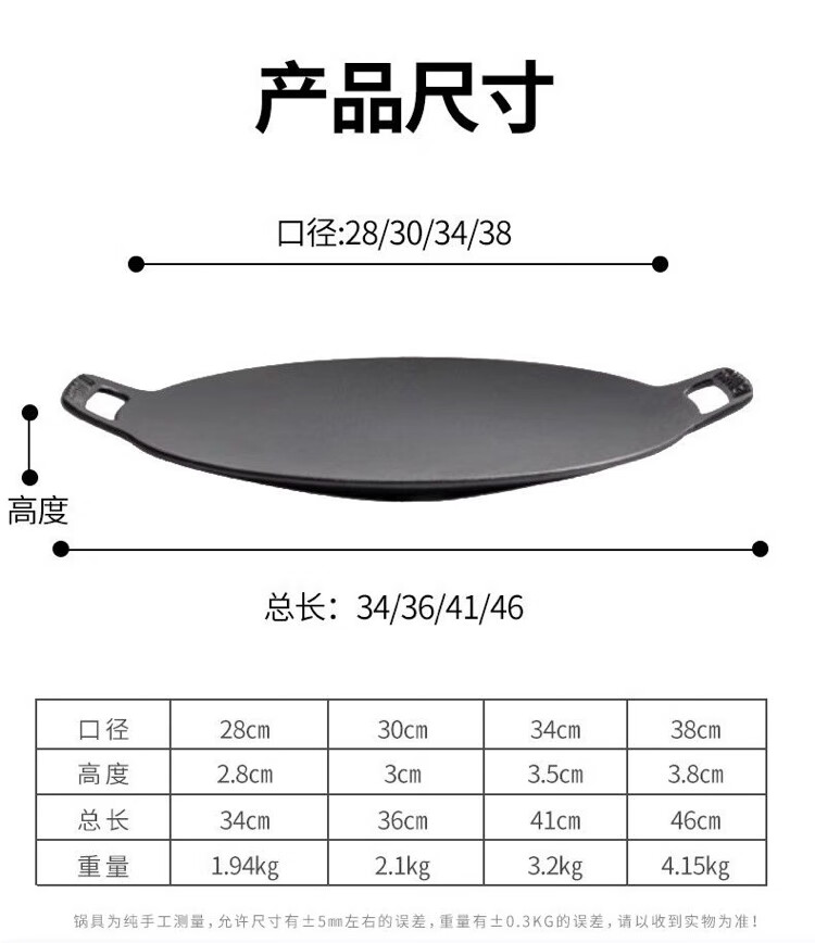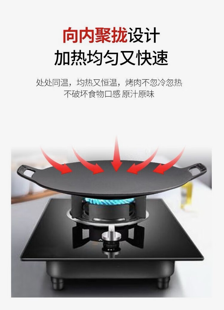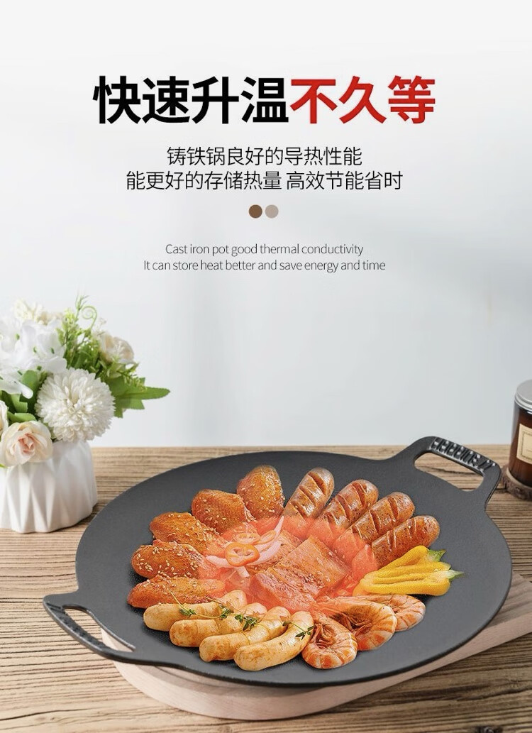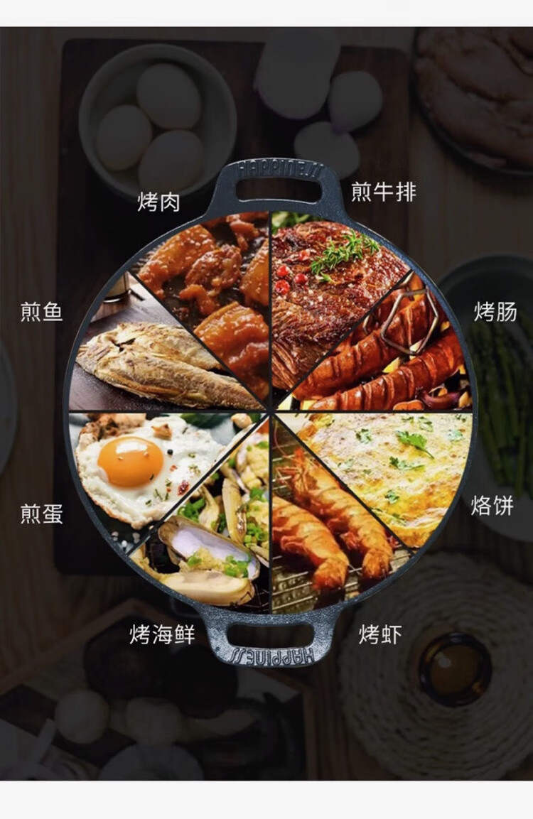 户外铸铁烤炉烧烤炉烧烤肉圆形煮茶露营木炭无涂层加厚 40cm螺纹烤盘+烤肉夹+麻绳+油刷